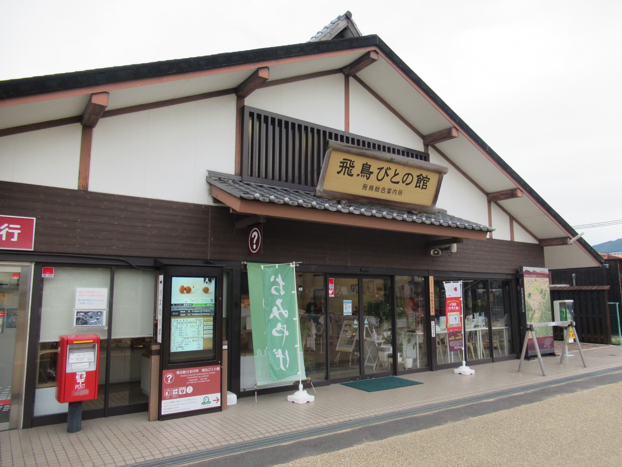 飛鳥駅前にあります。明日香村観光資料がある観光案内コーナーと、奈良土産販売スペースがあります。奈良漬、素麺、落雁、ジャムなどの食品の他に、歴史本や写真集もありました。JR東海ツアーズのずらし旅で今回奈良観光をしたので、ずらし旅体験クーポンをレンタサイクルに利用するため、受付でクーポン使用手続きをしました。レンタサイクル券と橘寺拝観券と主要観光スポットの割引券が付いている飛鳥王国パスポートを引き替えました。明日香村観光前でしたが、高松塚古墳壁画のクリアファイルを購入しました。飛鳥駅を利用する方は観光前に寄ることをおすすめします。