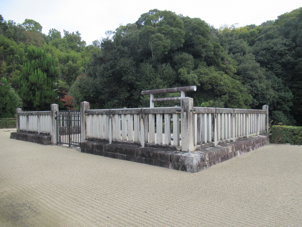 猿石がある吉備姫王墓へ行った時、周濠がある欽明天皇陵がそばにありました。門があり、白砂がきれいに掃かれていました。説明板に、明日香村唯一の前方後円墳と記されています。日本書紀に欽明天皇は571年に亡くなり、檜隈阪合陵に埋葬されたと書かれているそうです。欽明天皇の妃が後に、合葬されたとも書かれています。駐車場があり、訪れる人がいない静かな陵です。