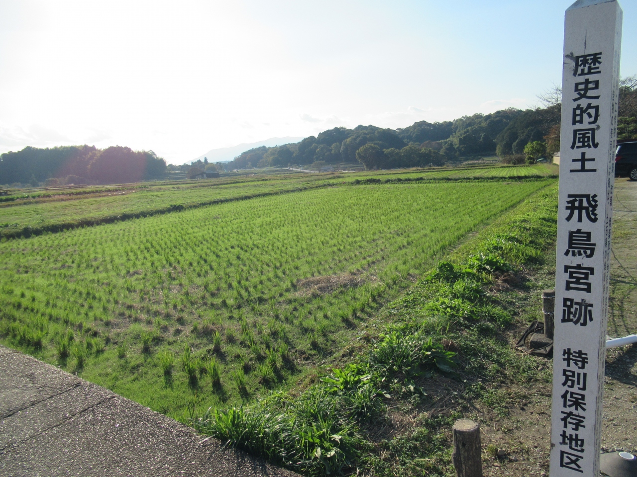 飛鳥寺に行った時、周りの水田の中に、歴史的風土飛鳥宮跡と書かれた説明柱がありました。今は水田が広がっていますが、7世紀半ばの皇極天皇の宮殿がありました。壬申の乱で勝利した大海人皇子が飛鳥宮で天武天皇として即位しました。この辺りに飛鳥時代の複数の宮が継続的に置かれていたことが判明し、2016年に史跡の指定名称が飛鳥宮跡に改められました。