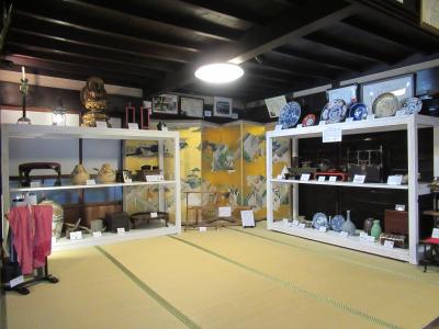 材木商や肥料問屋、綿花、両替商などを営み豪商となった、豊田家歴代当主が収集した掛軸や骨董品、蒔絵重箱、食器、壺、双六、古文書などが展示されています。海の堺、陸の今井とか、大和の金は今井に七分とまで言われた今井町の豪商だった姿が伝わってくる記念館です。現在、記念館向かいには1770年に建てられた豊田家住宅が建ち、江戸時代から残る建物の様子や豊田家で使用されていた家族用食器や来客用食器などが数多く展示されています。どちらも今井町の豪商として大いに繁栄していた様子がわかる展示物です。1770年ごろに建てられた建物の内部の土間は漆喰と土を混ぜた作りで、柱や梁は剝き出しで煙やススで黒くなっています。出入口の戸は人が外に出るとからくりで閉まる造りで、外から人が入れない工夫がされています。