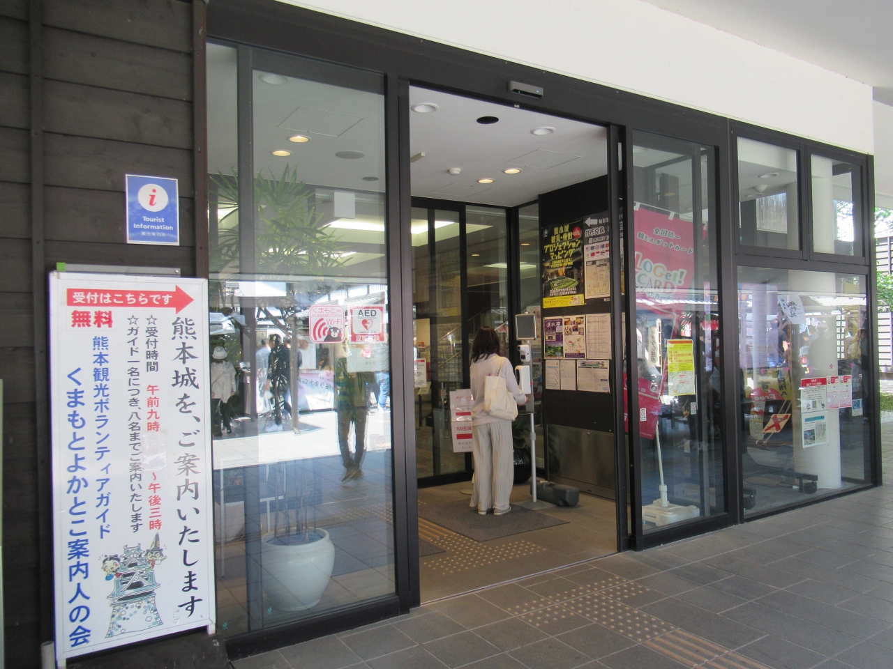 熊本城の桜の馬場バス停前の城彩苑にあります。バス停のそばです。熊本城、水前寺成趣園などの観光地の資料や地図などがあります。外国語の資料もあります。熊本城を見学した後に水前寺成趣園に行こうと思っていたので、最寄りの市電の停留所名や市電の乗り方を聞きました。江津湖についても聞いて、体力的に無理だと分かり行くのを止めました。旅行前に調べましたが、観光案内所で詳しく教えてもらってよかったです。