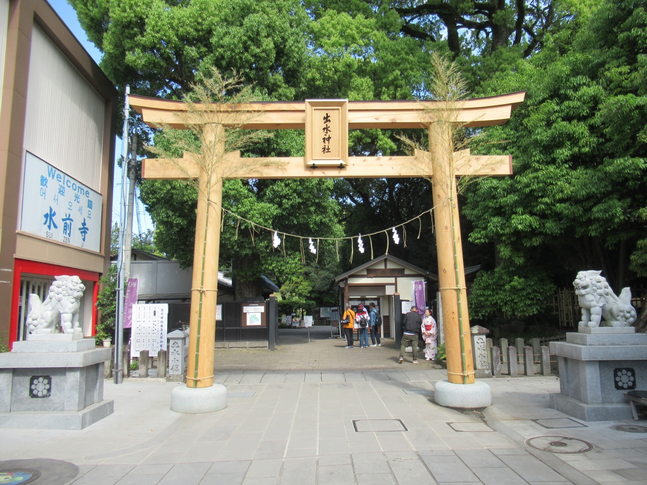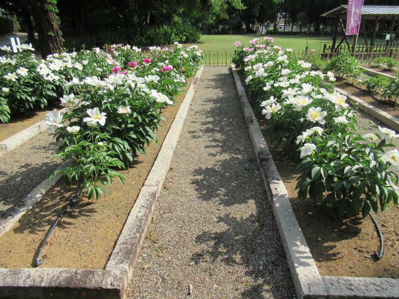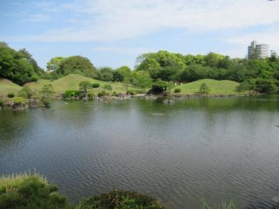 熊本市電の水前寺公園電停から数分歩くと参道があり、土産物店が並んでいます。進むと水前寺成趣園正門があります。1632年に初代熊本藩主になった細川忠利は豊前羅漢寺から来ていた住職玄宅のために寺を造り水前寺と号し、御茶屋を建て水前寺御茶屋と呼ばれたのが水前寺成趣園の始まりです。二代目藩主細川光尚、三代目藩主綱利にわたり作庭しました。阿蘇の伏流水をたたえた回遊式庭園です。1929年に国の名勝史跡に指定されました。庭園内に出水神社、稲荷神社、能楽殿、古今伝授の間があります。梅、桜、椿、シャクヤク、花菖蒲など四季の花を観賞できます。訪れた時、シャクヤクが咲いていました。冨士築山のなだらかな曲線が印象的でした。