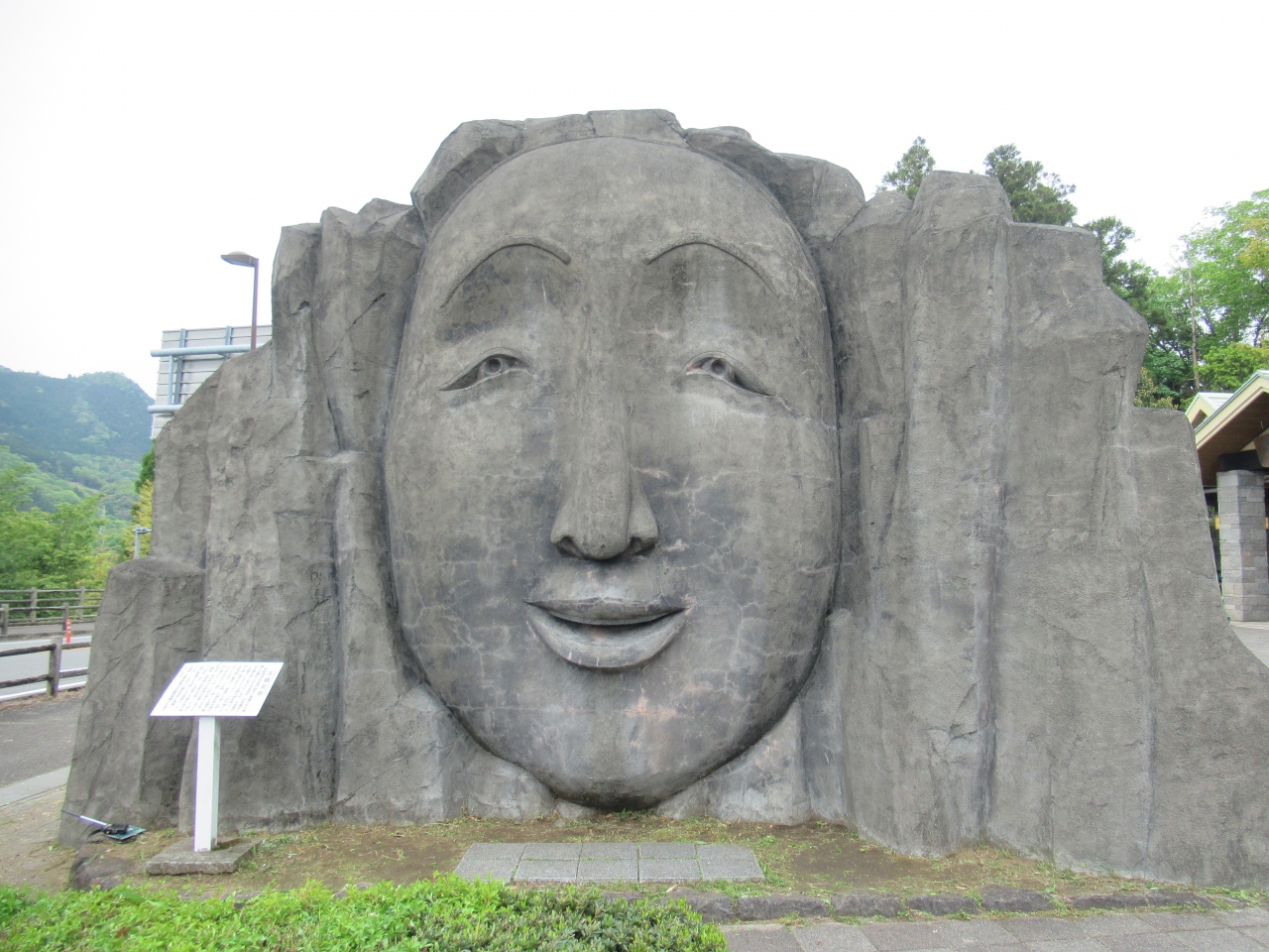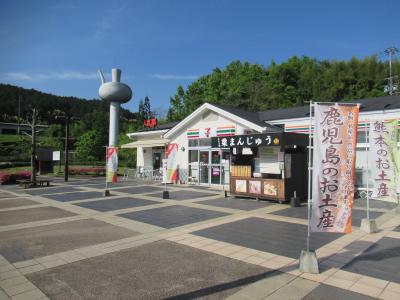 九州自動車道上りの山江サービルエリアで休憩をしました。コンビニのロゴが目立つ建物と急須の塔が特徴です。フードコートは熊本ラーメンや唐揚げを中心としたメニューです。コンビニにかるかん、薩摩芋タルト、さつま揚げ、海軍航空カレー、マンゴーを使った菓子などの土産物があります。草地の藤棚の下にベンチがあり、ペットと家族が休める犬のひろばがあります。石で造られた五木の子守唄像がありました。作詞した犬童球渓は人吉出身です。親を思う子守する子どもの心を想像させる穏やかで素朴な表情の石像です。