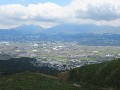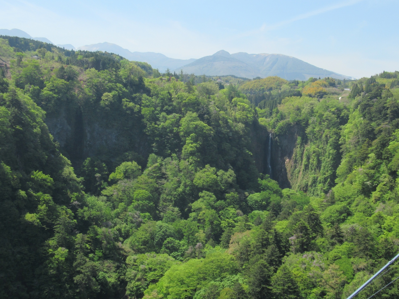 1791mの中岳をはじめ、1700m級の山々が連なり、周辺には広大な草原が広がっています。やまなみハイウェイを走っている時は、いくつもの山々が眼前に迫ってきてどれが九重連山かはっきりわかりませんでしたが、九重夢大吊橋を渡っている途中で橋から雄大な九重連山を眺めることができました。雄大な山々と広々とした草原は、国立公園にふさわしい景観だと感じました。