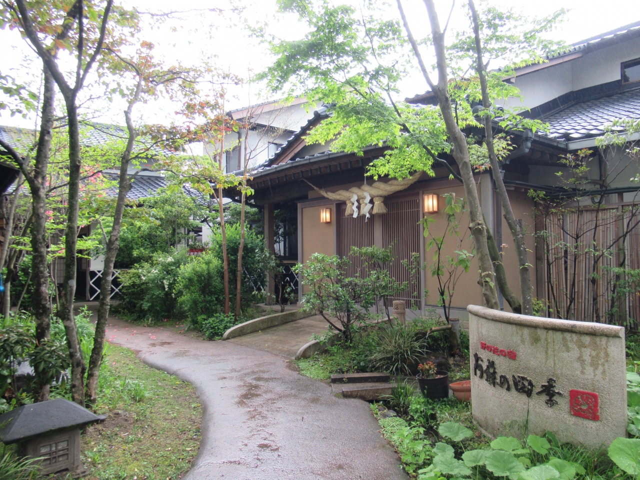 300年前に肥後藩主の命によって建てられた、黒川温泉で最も古い日本旅館です。藩主の重臣や長崎奉行も利用したと伝わっているそうです。館内の廊下の床や手すりは黒光りし傷も目立ちますが、その姿からは歴史が感じられました。食事は馬刺しやヤマメ、牛肉のせいろ蒸し、虹鱒の刺身、小国大根の唐揚げ、タラの芽の天ぷらなどが適量、温かいうちに出てきて美味しかったです。風呂は家族風呂を含め7つあり、深さ130cmほどの立ち湯や寝湯も楽しめました。残念だったのは、内湯に洗い場が3つしかないことと、客室の洗面台からお湯が出ないことでした。洗顔用のお湯は前日の夜、宿の人がポットに入れて部屋に置いておいてくれました。