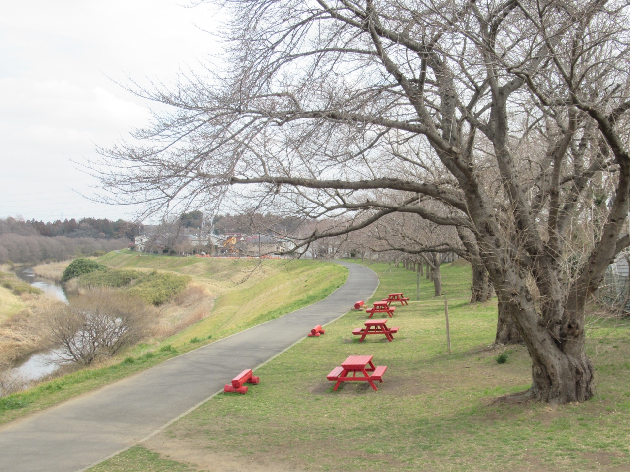 運河駅から3㎞程、運河を流れてきた水が江戸川に注ぎ込む河口に造られたこじんまりした公園です。遊具類はありませんが緑豊かな公園で、桜が植えられ東屋も造られています。土手沿いを散歩してきたりサイクリングをしたりしてきた人たちの休憩場所にもなっています。
