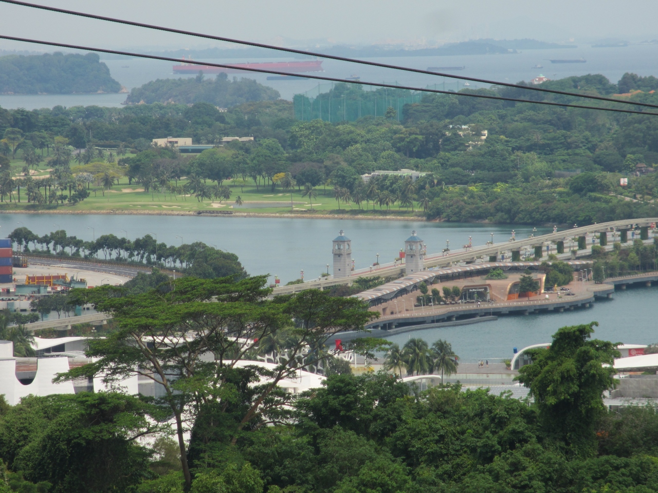 シンガポール最大の観光地セントーサ島へはケーブルカーで向かうこともできます。出発駅は、戦時中、最終激戦地であった高台、マウントフェーバーになります。約10分ほどの空中散歩になりますが、海面から50mほどの高いところを渡っていくため、ちょっと怖さがありますが展望は最高です。マウントフェーバーへは車やタクシーの利用が便利です。