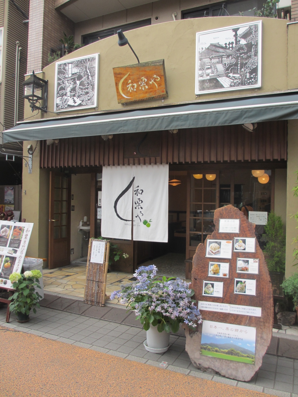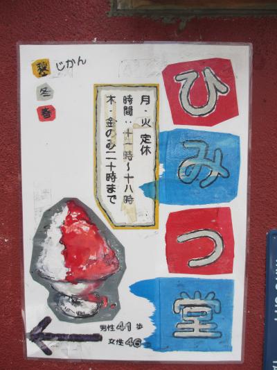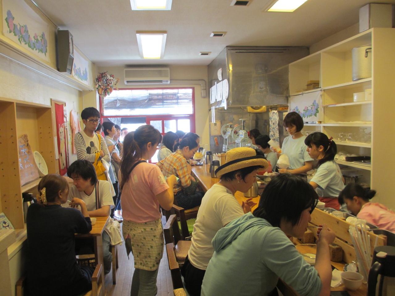 谷中銀座の入口を少し行ったところを左に曲がってすぐのところにあるかき氷専門店です。数多くの雑誌にも紹介されているためよく知られています。そのため長く待つことがあります。私が行った時は平日でしたが1時間待ちでした。待つときは3,4時間待つこともあるそうです。ただし整理券を貰えるため、並ぶ必要はなく、指定された時間の15分ほど前に列に並べば良いようです。かき氷の種類も多く、生の果汁を絞ったものもあり、迷ってしまいます。見ていて一番の人気はイチゴミルクでした。