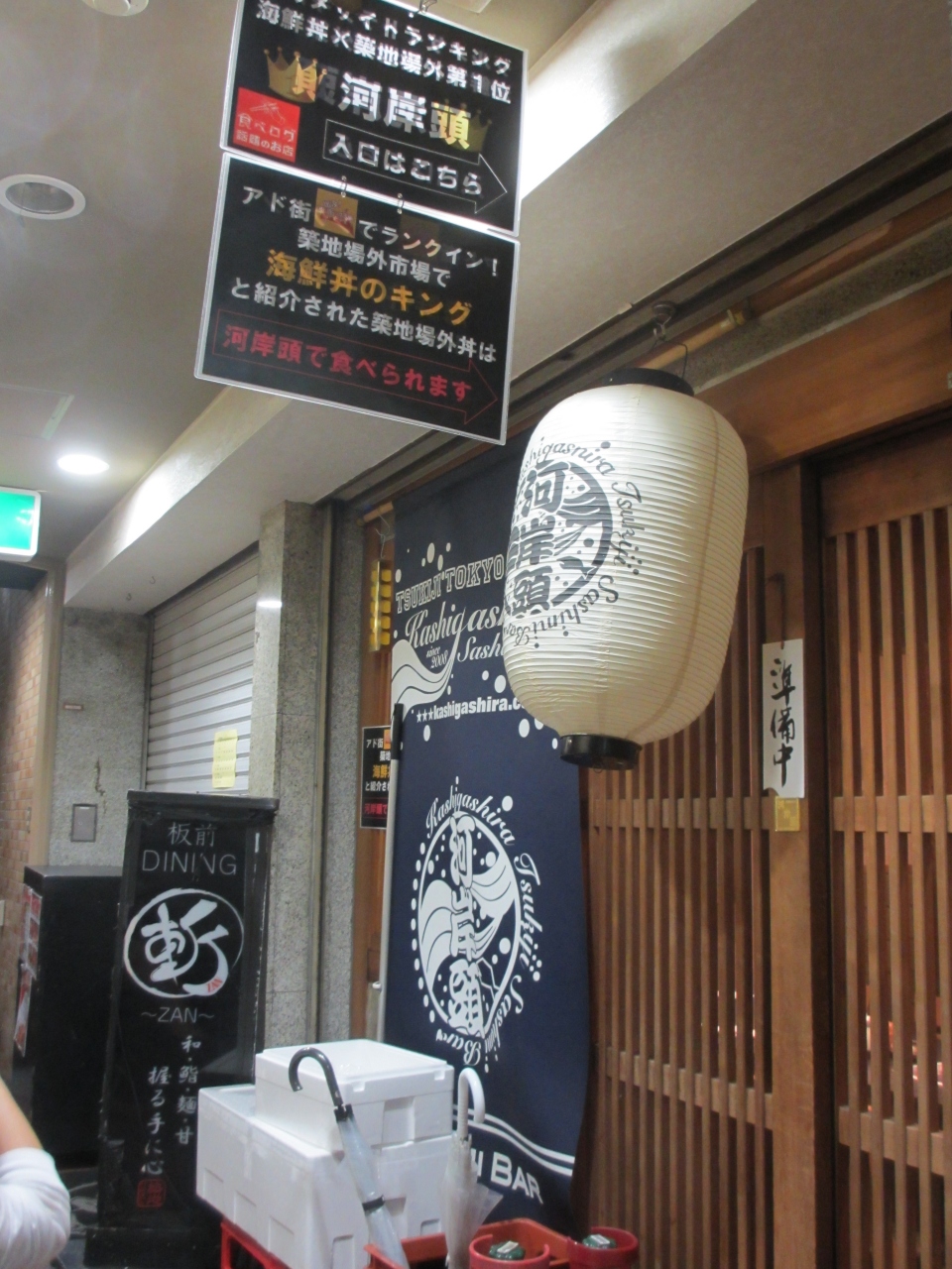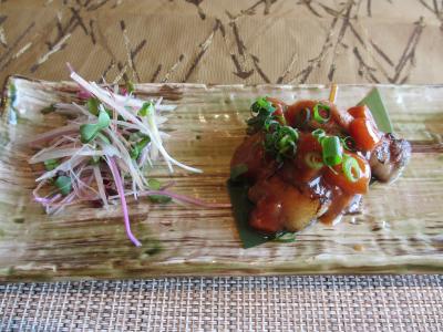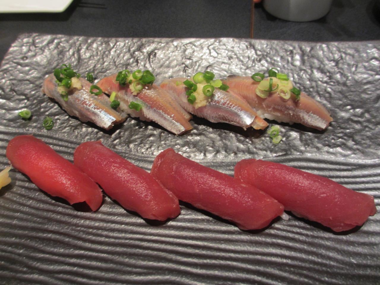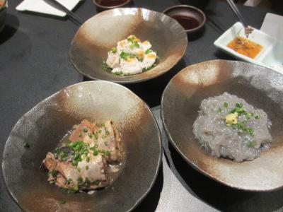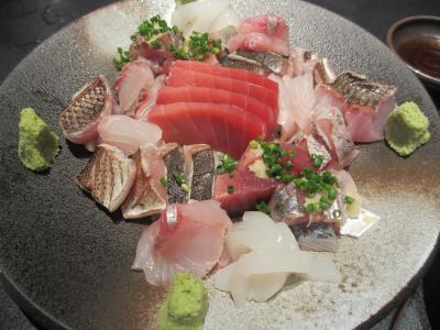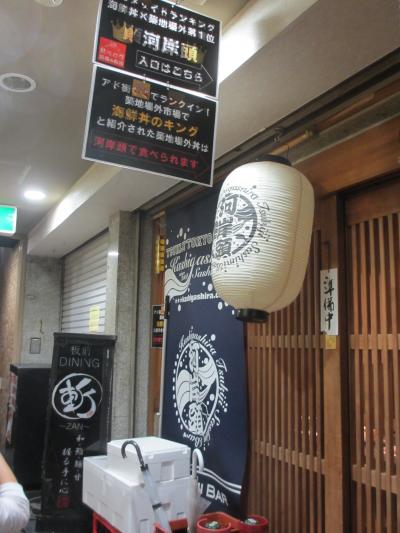 築地場外市場の晴海通りに面し、地下1階にある居酒屋です。テレビや雑誌にもよく取り上げれれている店で、夜のメニューはおまかせコースのみです。スープから始まり、刺身盛り合わせ、マグロのあご焼、生シラス、はも、にぎりなど12品ほどの料理が次々に出されます。料理に合わせて日本酒も提示してくれます。当日の魚は仕入状況によってかわってきます。私たちが食べた刺身はどれもあぶらがのっていてとてもおいしかったです。生シラスも新鮮そのものでした。土曜の夜に伺いましたが、予約しなかった客はみんな断られていました。席は全部で32ありますが、訪れる際は予約が必要です。