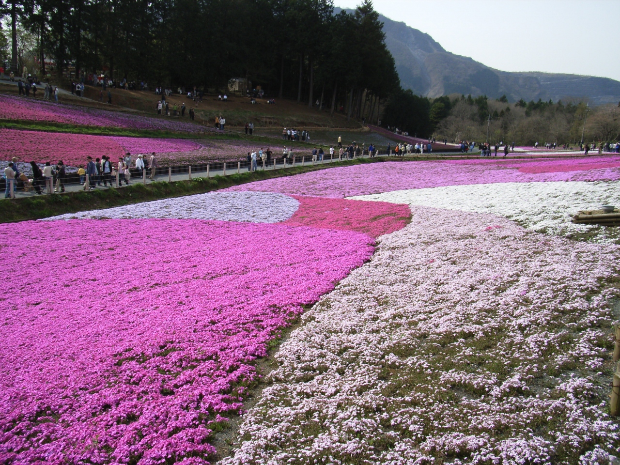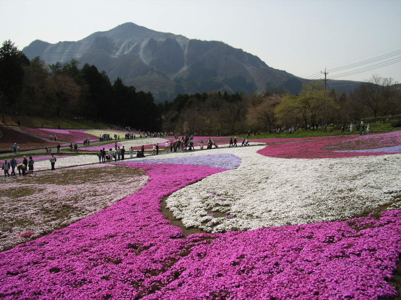 芝桜満開の時期を狙って出かけてきました。広い園内は赤や白、ピンクの芝桜が絨毯のごとく敷きつめられていました。武甲山を背景にした満開の芝桜は大変美しく、一緒に行った母はとても感動していました。傾斜地に作られていますが、歩くところは階段状になっていて、お年寄りにも歩きやすかったです。朝早く出かけ、開園と共に入園できたので混雑はしていませんでしたが、帰るころには駐車場は満車、園内は人、人で大変な混みようになっていました。出かける際は早め、早めの行動が良いようです。