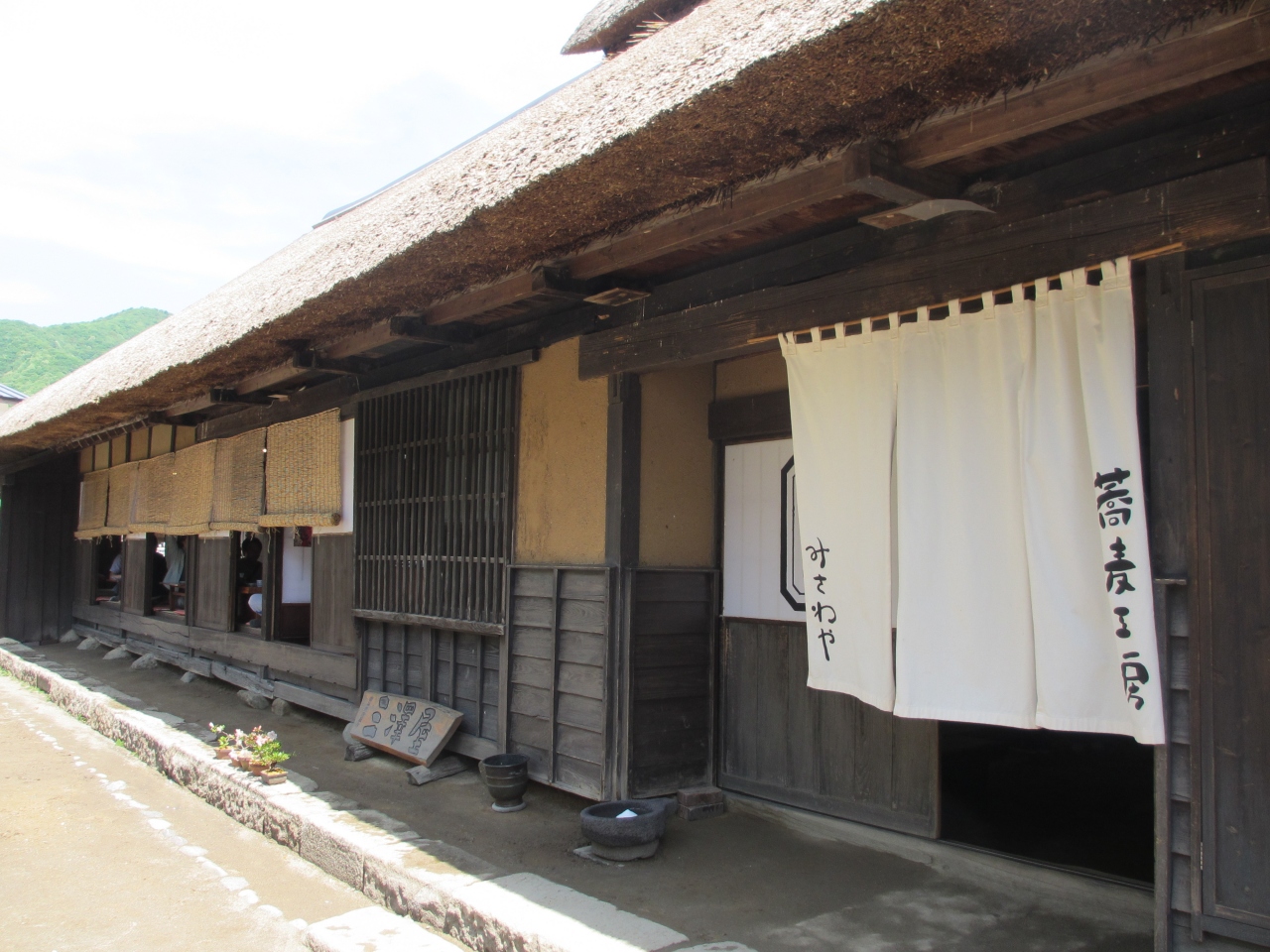 白河ICから1時間15分ほどのところにある大内宿の入り口にあるそば屋さんです。長ネギを箸代わりにして食べる高遠そばや、会津地方の汁もので貝柱でだしをとるこづゆが有名です。オーダーをするとまず出てくるのが味のしみこんだ大根の煮物と白菜の漬物です。建物内は2階もあり広いですが、開店後はすぐ満員になってしまいます。我が家はネットで予約をしていったため待たずにすみましたが、予約しない場合は屋外で1時間以上待つこともあるようです。