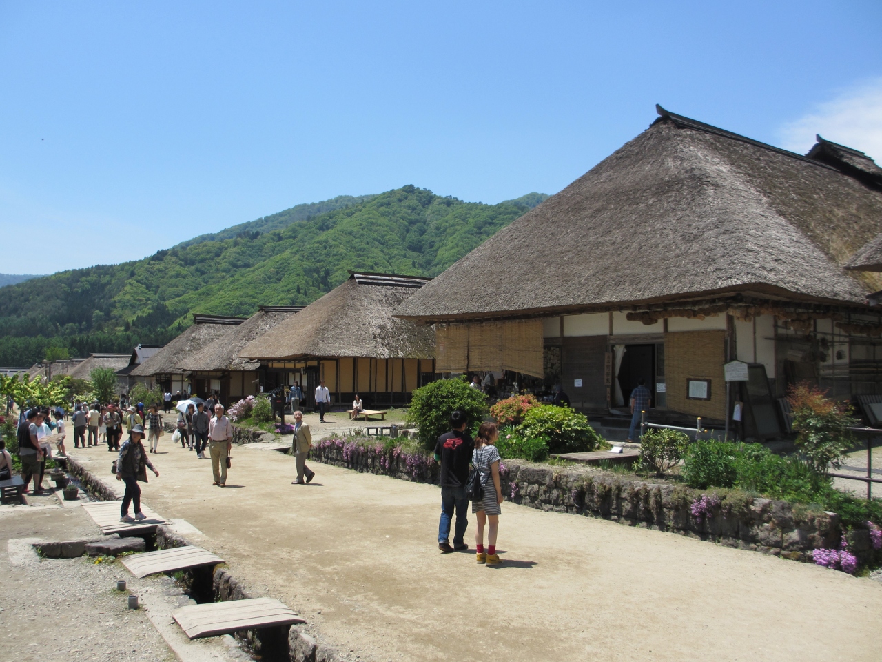 白河ICから1時間ちょっとのところにあり、江戸時代の宿場町が美しく保存されています。国の伝統的建造物地区にも選定されています。500mほどの道の両側には50軒ほどの民家が並び、それぞれ土産屋や飲食店、民芸品店などを営んでいます。道の突き当りにある階段を上った所には、宿場町全体の町並みが見渡せる場所があります。一軒一軒店をのぞきながら、イワナの塩焼きやうるち米で作られたしんじろう、揚げまんじゅうなど地元の食べ物を味わうのも楽しかったです。