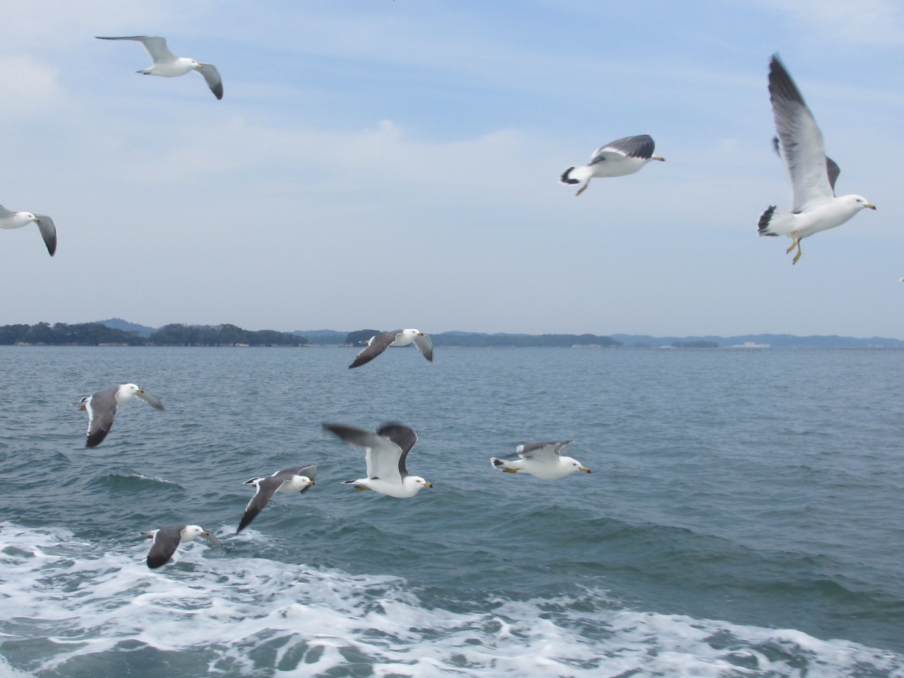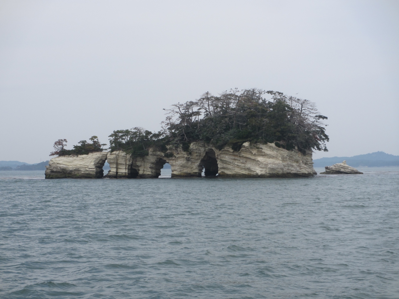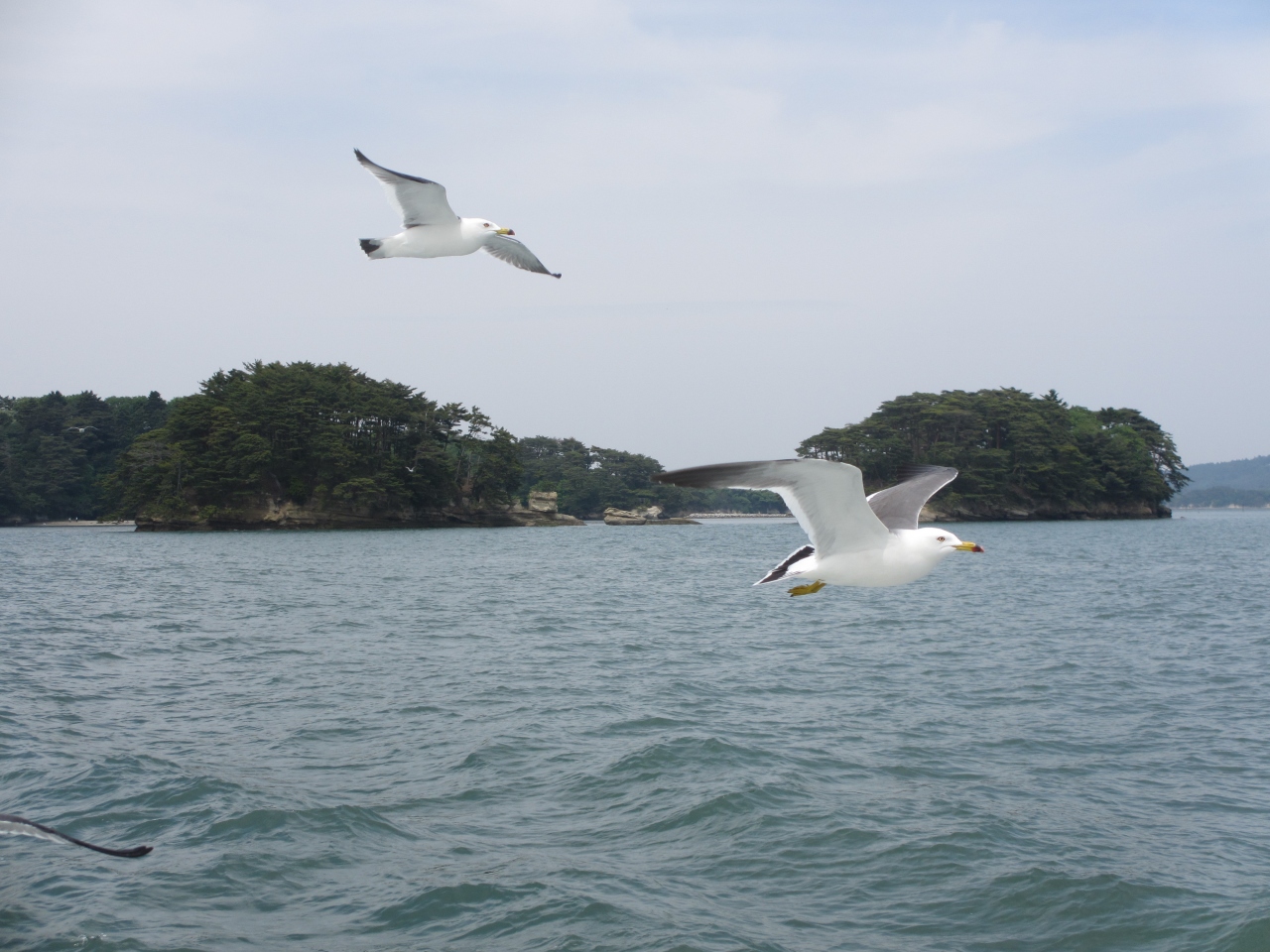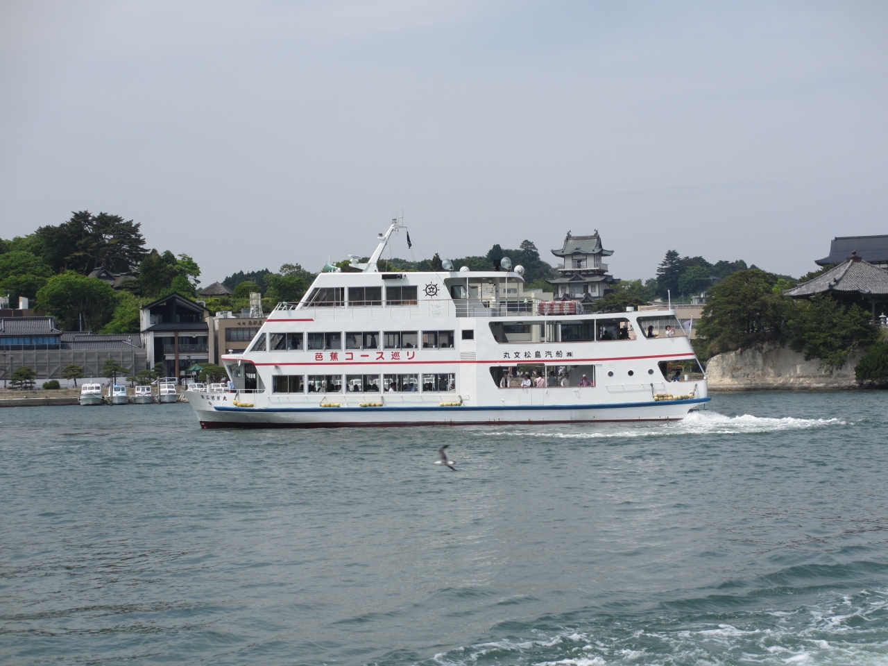 松島見物には欠かせない観光船です。いくつかのコースが用意されていて希望に沿った観光船に乗ることができます。50分かけ松島を周遊する仁王丸が一般的なようです。船内では島の名称とそのいわれがテープで流れます。窓が開かないので写真が撮り難いため、写真をつる場合は船の後部に移動する必要があります。船上からの餌やりは禁止されていますが、餌を投げるとカモメがたくさん船に近寄ってきます。定期船は1時間ごとに出ていますが、臨時便が出ることがあります、ネットで観光船の割引券を手に入れることもできます。