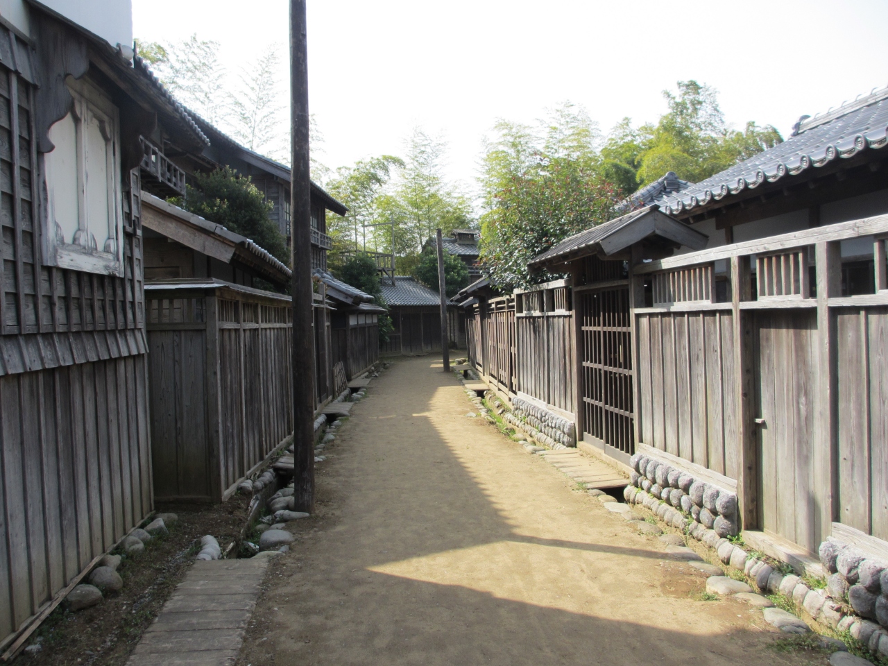 つくばみらい市にあるこの施設には、広大な土地の中に、テレビや映画の時代劇を撮影する建物やセットがたくさん作られています。施設内は長屋、下町、江戸城、宿場、江戸町屋の5つのゾーンに分かれています。長屋ゾーンは江戸庶民の暮らしを、下町ゾーンは江戸の下町の町並みを、江戸城ゾーンは江戸城を中心とした武士の生活を、下町ゾーンは下町風情を、江戸町屋ゾーンは江戸を支えた大店群をそれぞれ再現しています。どれも撮影用に作られているため、意図的に古い感じを表現しています。平日訪れたため人出は少なく、広い施設内をのんびり散策することができました。飲み物の自販機は目立たないところに数台ひっそり置かれていましたが、食事ができる場所はありませんでした。