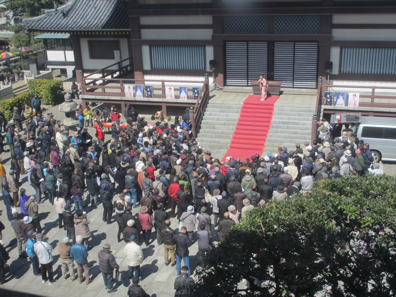 たまたま出かけた西新井大師でしたが、運がいい?ことに縁日でした。境内にはたくさんの屋台に加え、植木屋さんも店を出していました。新人演歌歌手のお披露目には参拝客も聴き入っていました。参道付近には昔からある店と、新しい店が融合し、かつてに比べかなりにぎやかな雰囲気の街になっていました。