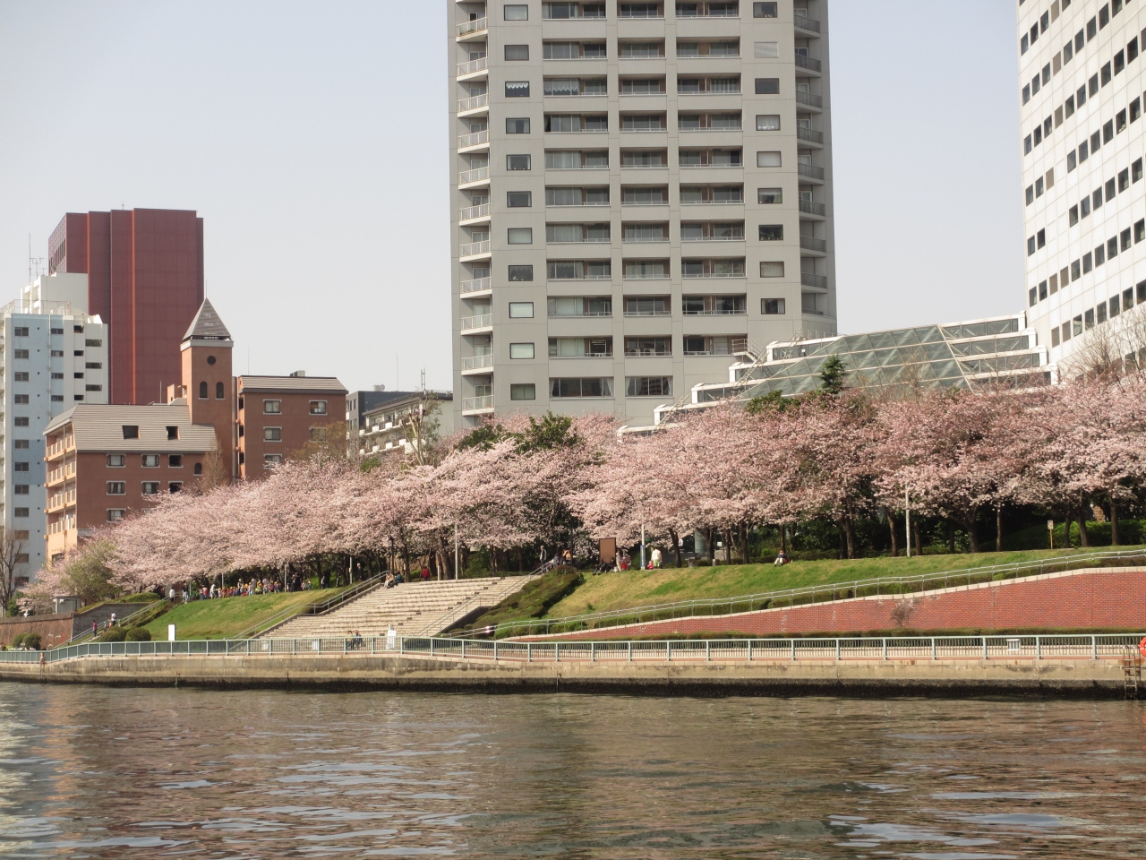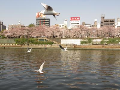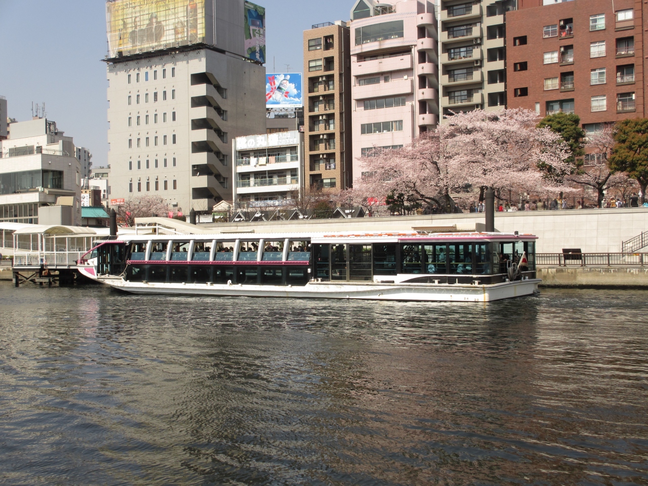 東京の桜満開宣言が出た翌日、浅草から日の出桟橋まで水上バスに乗って桜見物をしてきました。桜の季節は、お花見ダイヤと銘打ってコースを吾妻橋上流まで延長し、隅田川沿いの桜並木とスカイツリーを観賞できるように配慮してくれます。その後は国技館や築地市場を遠目に見ながら、浜離宮庭園を経由し、レインボーブリッジが見える日の出桟橋まで運行してくれます。暖かい日差しとさわやかなそよ風は気持ちよく、外国からのお客さんもたくさん乗船していました。コースはいくつかありますが、バスツアーのお客さんも多く、混雑を避けるために、時間に余裕を持って出かけた方が良いようです。