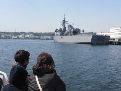 暖かい気候に誘われて、前から気になっていた軍港クルーズに乗船してきました。在日アメリカ海軍施設に停泊する戦艦や空母を遠目に見ることができます。クルーズは湾内を45分で一周、海上自衛隊所有のイージス艦や潜水艦、アメリカ空母ジョージワシントンなどを生解説付きで説明してくれます。大変人気がるクルーズなので、予約していった方が良いようですが、当日申し込みも可能です。
