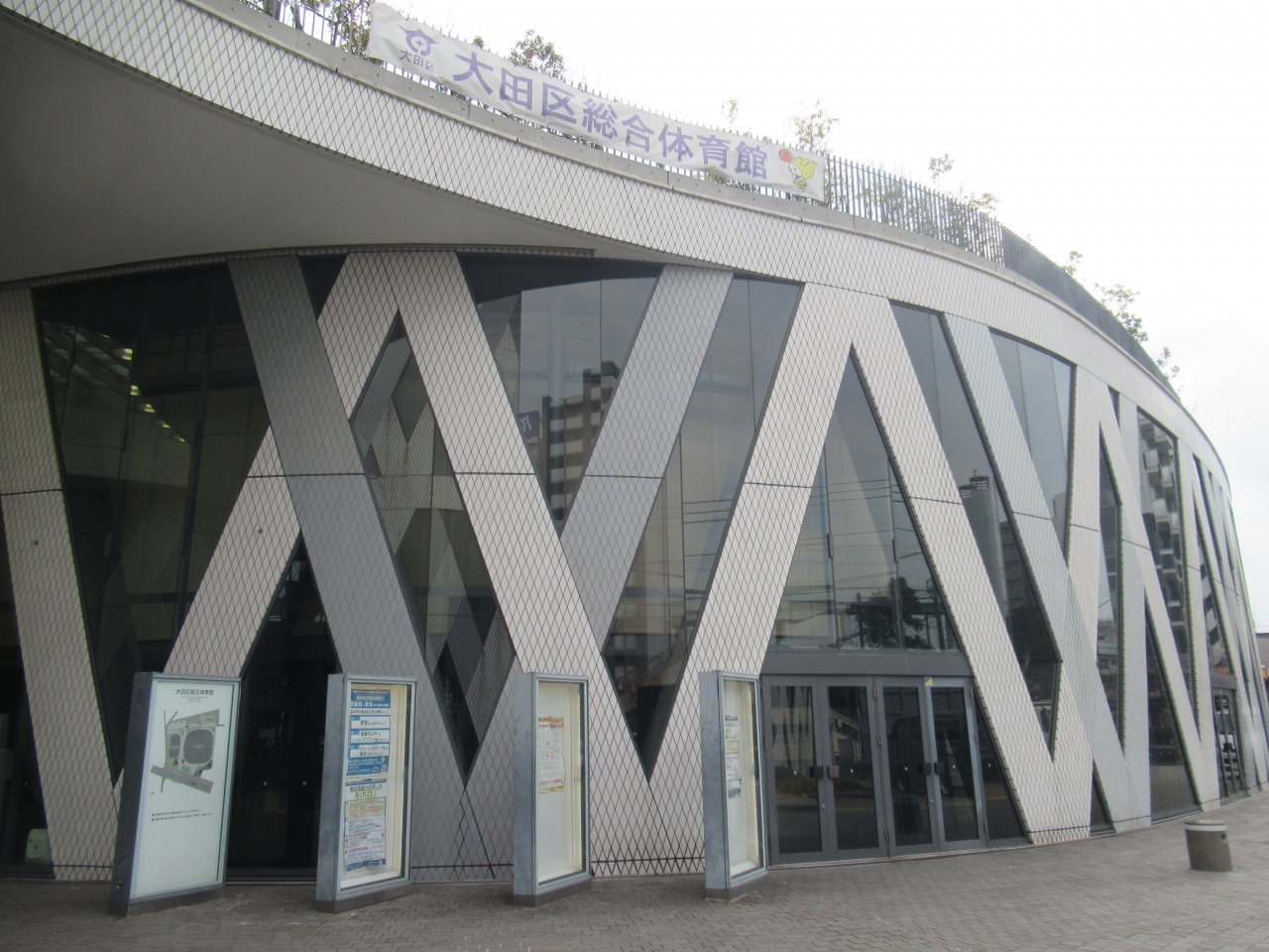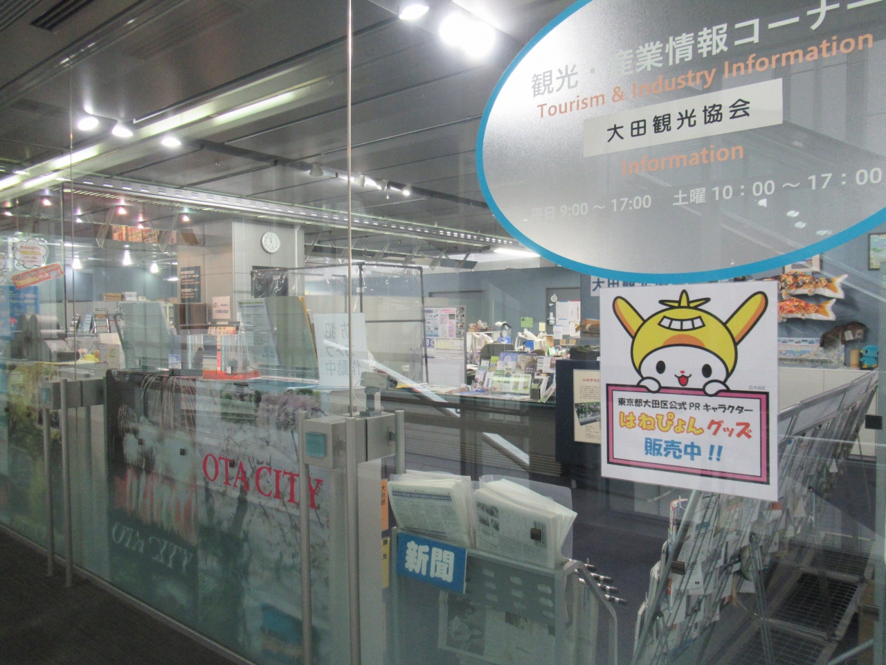 京急蒲田駅から3分ほど、第一京浜に架かる歩道橋を渡ったところに建っています。大小展示ホールやコンベンションホール、会議室などからなる施設です。2階には大田区の観光協会があり、京急蒲田から六郷橋まで散策する際の地図や見どころが記載されているパンフレットなどをいただきました。大田区内の地域ごとの地図やパンフレットが用意されているので、散策前に訪れることをおすすめします。観光案内所は京急蒲田駅構内にも設置されています。