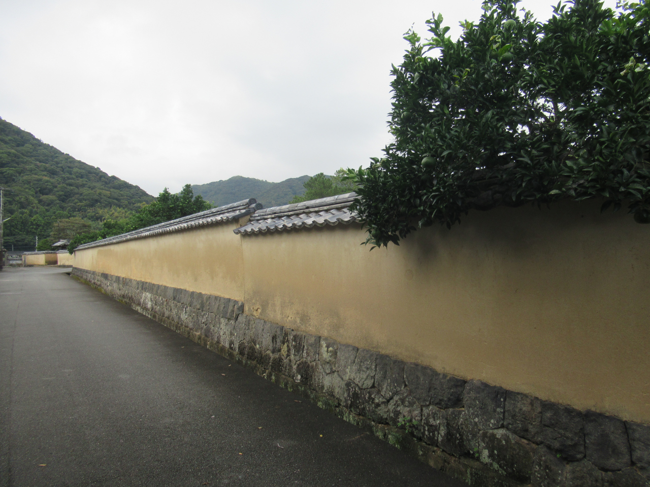 萩市内に三つある伝統的建造物群保存地区の一つです。橋本川に沿った東西約150m、南北約300mの範囲です。武家屋敷がありました。右田毛利家下屋敷、寄組児玉家、粟屋家、大組町田家の屋敷跡などがあります。左右を高い土塀で囲み、見通しのきかない鍵曲が残っています。土塀から枝が張り出している夏みかんの木があるのも特徴です。夏みかん栽培の始めは、維新後生活に苦しむ士族救済のための授産事業として奨励されたことを知ると感慨深いです。