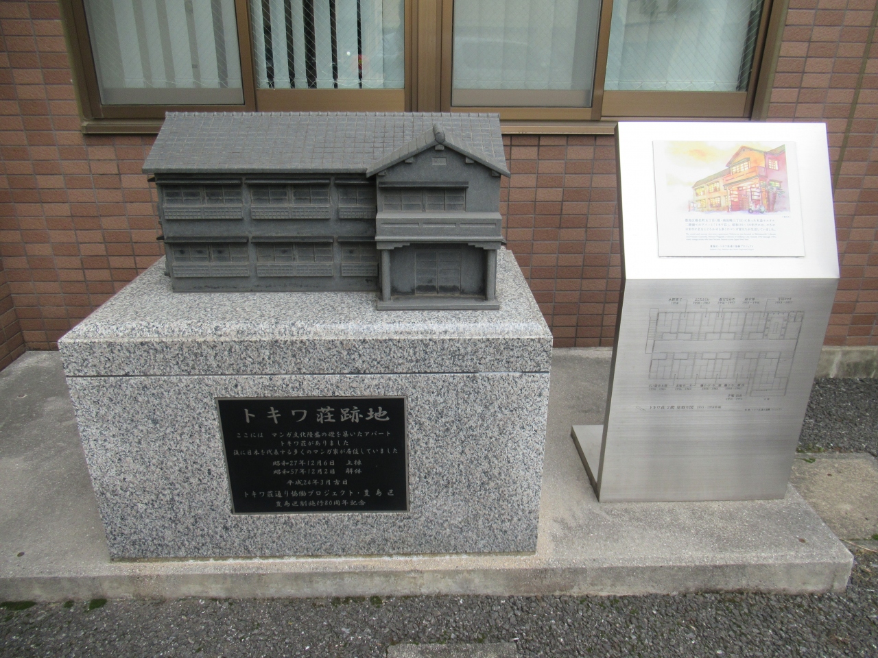 数年前に一度訪れましたが、今回、トキワ荘通りお休み処の担当の方にぜひ訪れてくださいとすすめられ再訪しました。場所はトキワ荘に住んでいた漫画家たちが利用したり、漫画に登場したりする中華料理店・松葉の向かいの路地を入った突き当りです。1952年に建てられたトキワ荘が実際に建っていた場所で、現在は黒い石造りのモニュメントが建っています。こじんまりしていますが、漫画の聖地としてロマンが感じられるモニュメントです。