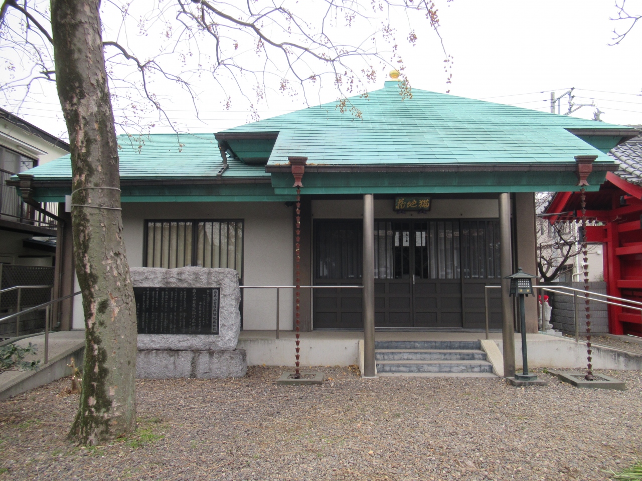 JR駒込駅北口と霜降橋交差点の間に造られている妙義坂の途中に地蔵尊が祀られています。1688年に子孫繁栄を祈願して建てられたお堂で、戦前は豆まきや縁日も行われ大変賑わったそうです。現在はお堂から15分ほどの城官寺の地蔵として祀られています。お堂の隣にはベンチやプランターが置かれ、ちょっとした休憩スペースも設けられています。戦前の賑わいに比べると、目を傾ける通行人もほとんど見られず、ひっそり建っている地蔵尊です。お堂の中には交通事故で亡くなった二人の少女の供養碑も建っています。