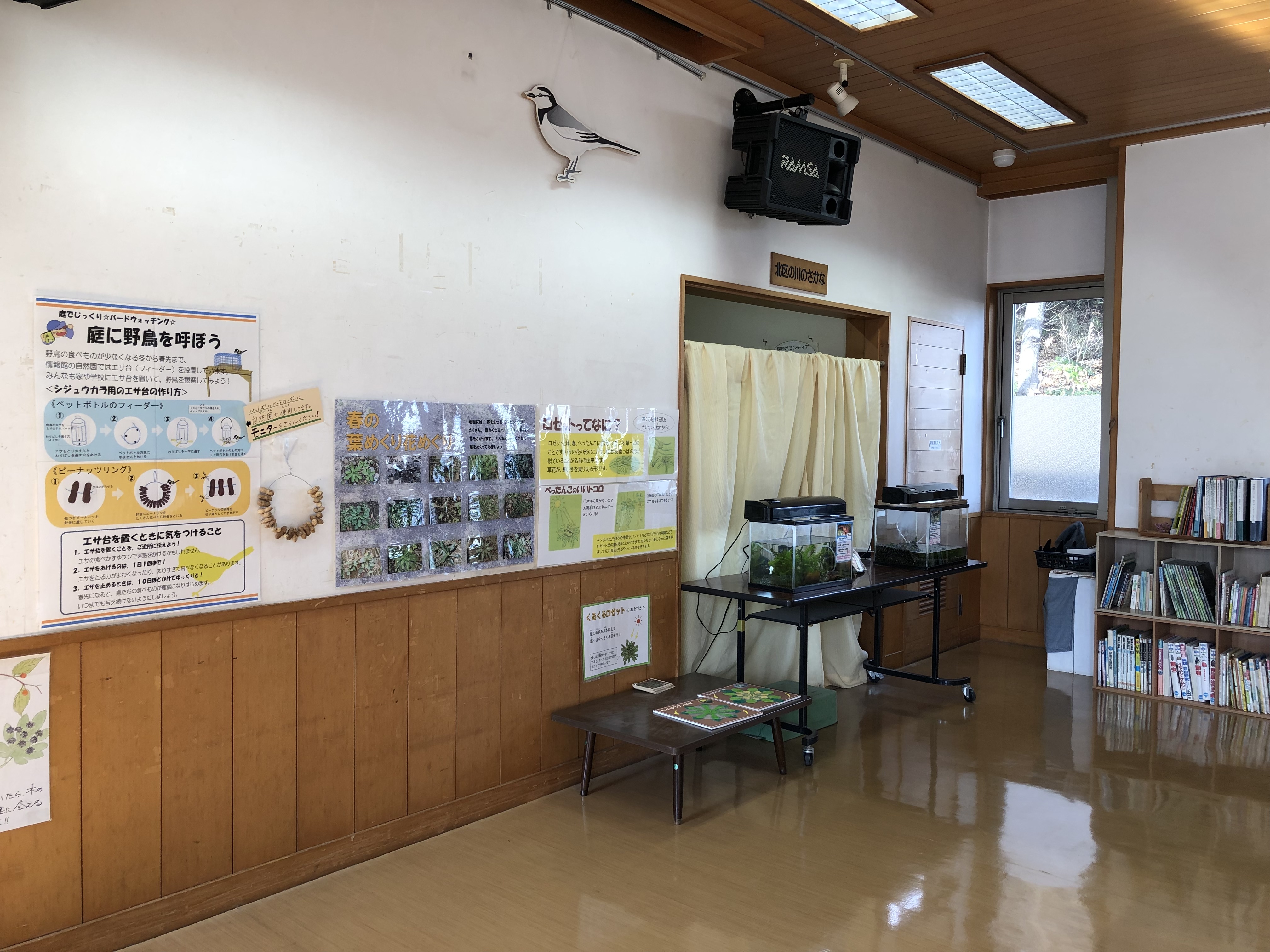 赤羽駅と東十条駅の中間にある清水坂公園内にあります。建物の1階が展示スペースになっています。北区や清水坂公園や園内の自然園の植物や昆虫や野鳥について展示してありました。季節に合わせた子供向けの分かりやすい内容です。図鑑や写真集や読み物の図書コーナーがあります。アメリカザリガニ、アカハライモリ、モツゴ、アズマヒキガエルを飼っていて、子供の目の高さに展示してあります。一般開放していない自然園をスタッフのガイドで見学することができます。親子でも大人だけでも当日申し込めます。訪れた時は雨上がり直後で、足元が悪く自然園ガイドは行っていませんでした。カラー刷の通信は子どもが理解できる内容でした。スタッフの努力を感じる施設です。