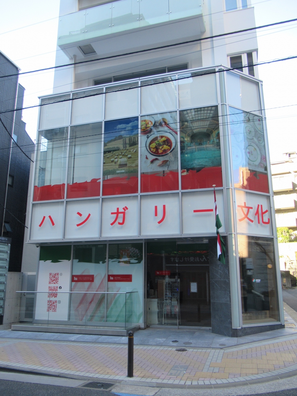 麻布十番駅1番出口から西へ歩いたところにある麻布十番商店街にあります。麻布山入口信号から100mほどです。日本・ハンガリー外交関係開設150周年に当たる2019年に開館しました。ハンガリーに関する展覧会や講演や室内楽などに関して一般向けに開催しています。イベントの案内をしていて、通行人に向けてモニターで興味を持つ動画を発信しています。後で調べると各国にハンガリー文化センターがあることがわかりました。
