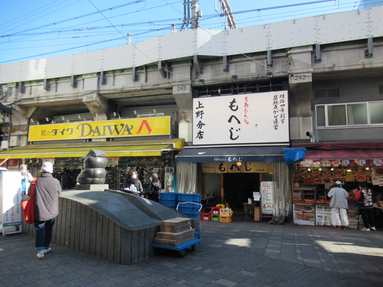 高架橋は観光施設ではありません。しかし東京駅と上野駅間の高架橋が完成したことで、100年近く前に山手線が環状運転されるようになり東京の近代化が進んだことを考えると、高架橋は貴重な歴史遺産と言えます。この高架橋もその一つで、上野駅不忍口から100mほどのアメ横商店街沿いに架かっています。橋の下には明治4年創業のもんじゃ焼き店・もへじ分店や、土産店、アクセサリーやバッグを売る店などが並び、活気と歴史が感じられます。