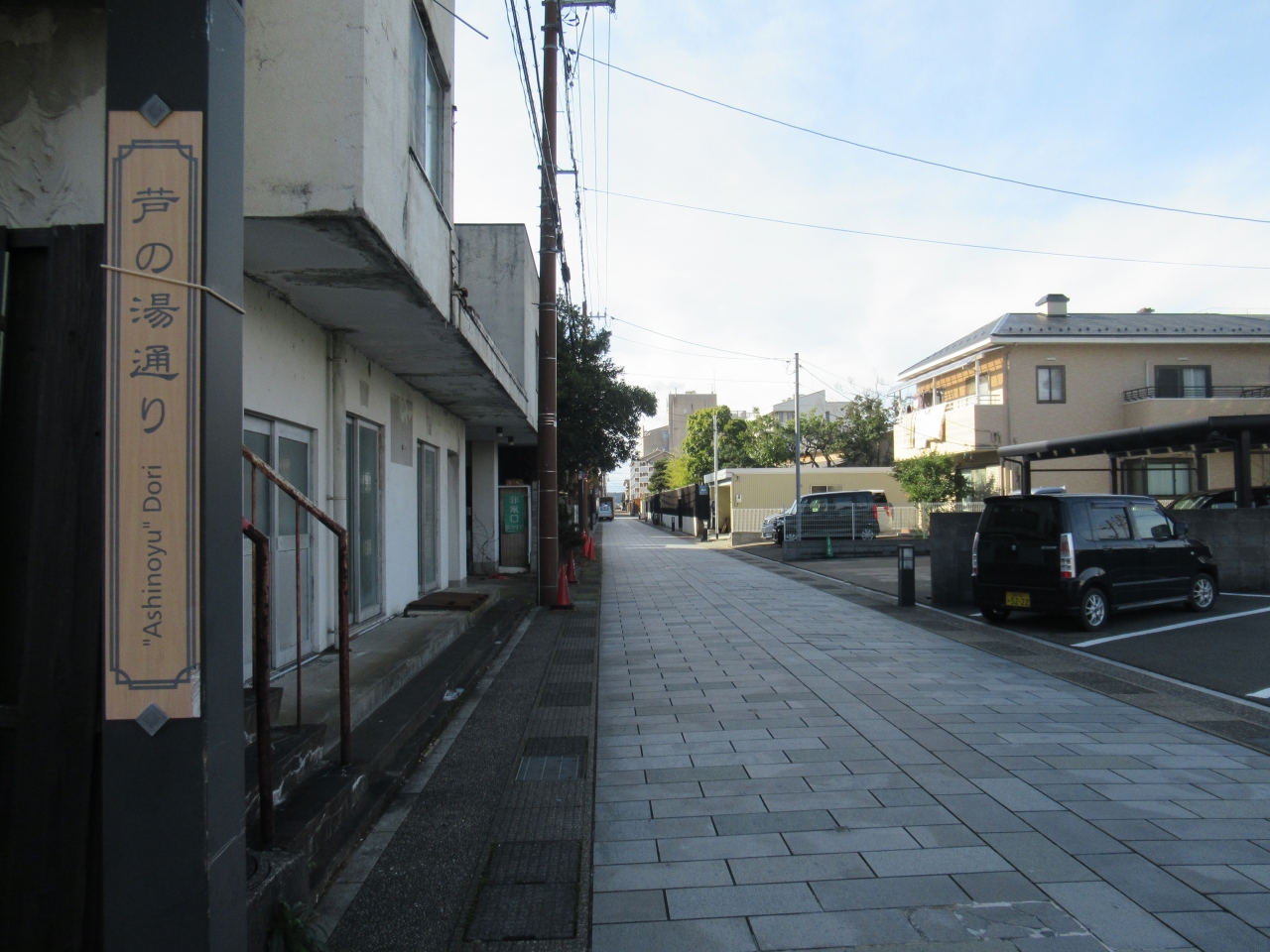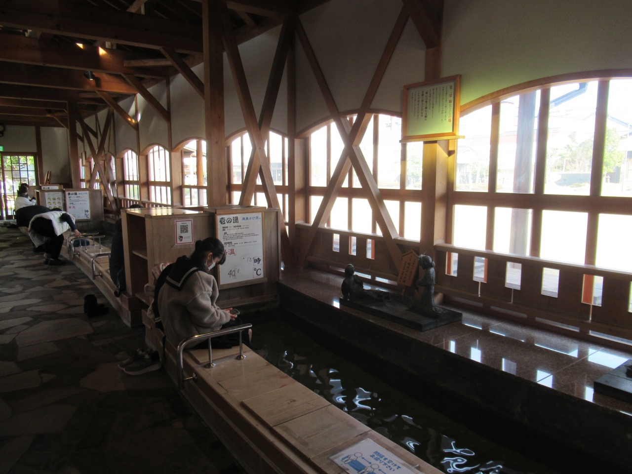 JR芦原温泉駅から4㎞程、バスで15分ほどの、えちぜん鉄道・あわら湯のまち駅向かいに造られている広場です。広場内には地元の人や観光客が利用する屋台村や、5つの浴槽がある無料の足湯・芦湯、芸妓さんたちが踊りの練習をする見番、医師として魯迅と師弟関係にあり日中友好の懸け橋となった藤野厳九郎記念館、芝生広場などがあります。広々とした足湯は温泉街らしさが感じられました。観光施設が少ない芦原温泉では、広場は貴重な観光施設だと思いました。