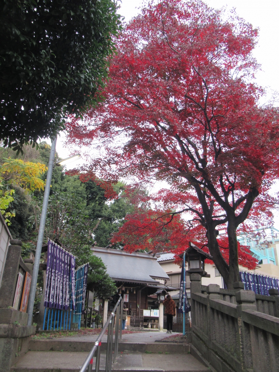 病院での診察までの待ち時間を利用して再訪、参拝してきました。丸ノ内線・新大塚駅から500mほどの住宅地に建っています。徳川秀忠が海川山野産植物の神を、江戸城の吹上御殿に祀ったことが始まりの神社です。その後、神社は護国寺の月光殿に移り、さらに1912年に現在の地に遷座した歴史があります。こじんまりした神社ですが、社殿前の賽銭箱には三つ葉葵が張り付けられています。かつては武家の信仰が厚かった神社ですが、現在は境内を囲むようにして多くの幟が立ち、地元の守り神として信仰されています。境内入口のモミジがきれいに色づいていたのが印象的でした。