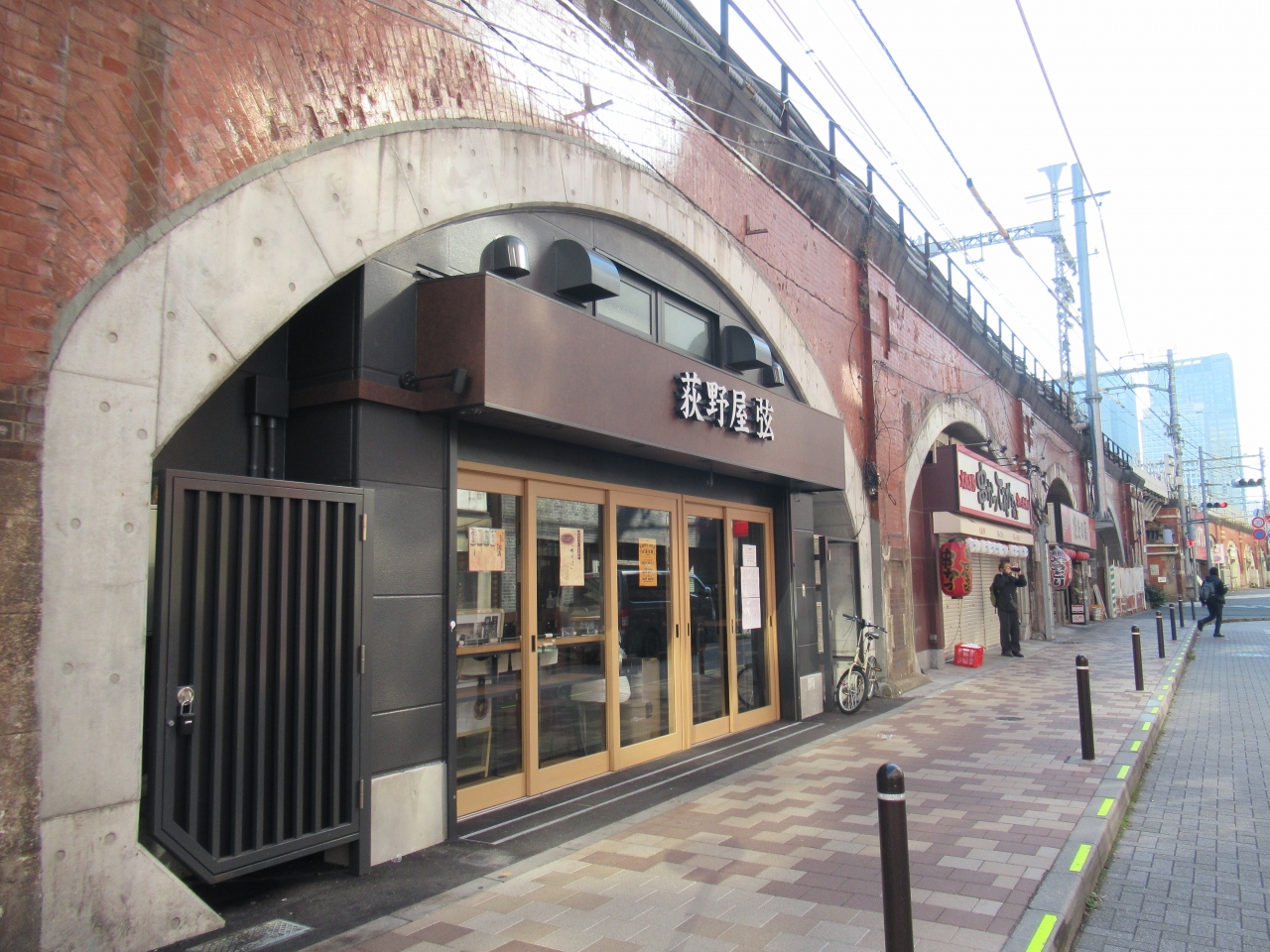 JR神田駅と秋葉原駅の間には多くの高架橋や架道橋が造られています。観光施設とは言えませんが、鉄道ファンや関心がある人には面白いスポットなのかもしれません。この高架橋もその一つで、神田駅北口から上白壁橋架道橋に続く100mほどの高架橋です。新しい赤煉瓦造りの高架橋で、他の架道橋や高架橋の赤煉瓦に比べ清潔感が感じられます。橋の下にはコンビニや飲み屋、カフェが出店しています。