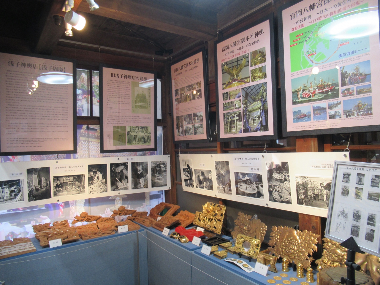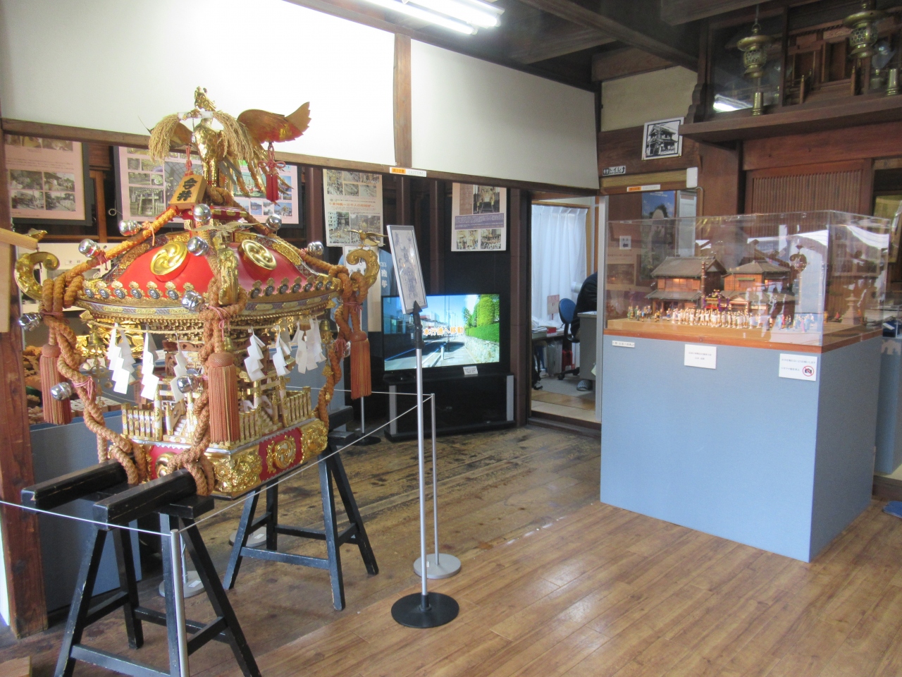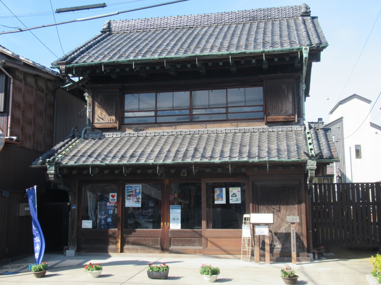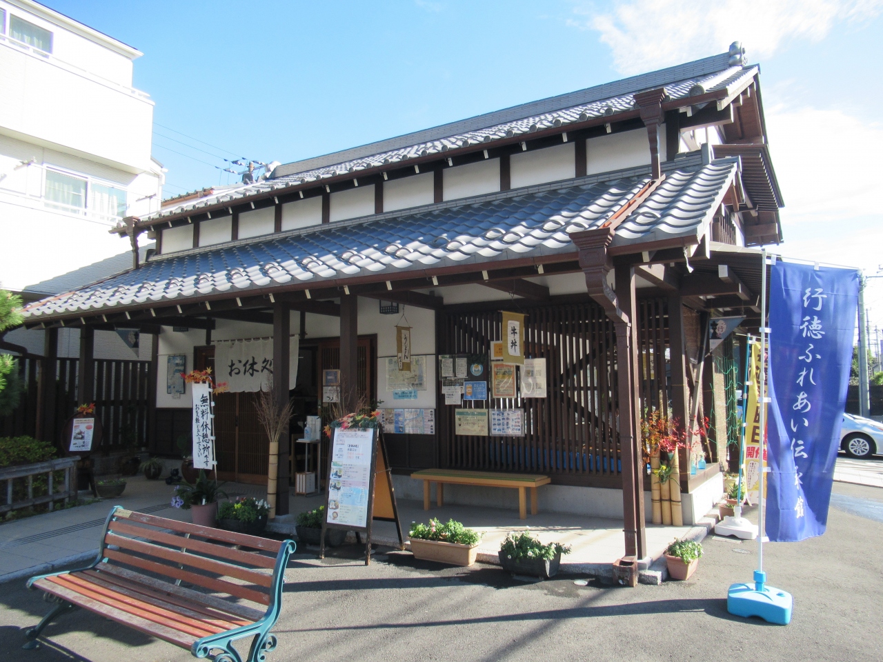 旧江戸川に並行する行徳街道の行徳4丁目バス停前にあります。室町時代創業で、代々仏師で、明治以降神輿を作ってきた浅子周慶の建物です。店舗と居住部は国登録有形文化財です。地元出身の詳しいボランティアが代々の浅子周慶の作品や五ヶ町例大祭や行徳の歴史を説明してくれました。行徳が神輿の街と言われている訳や、廃業した2つの御輿店(後藤店と浅子店)の神輿の特徴も教えてくれました。例大祭の動画で江戸神輿との違い(神輿をもむ)を知ることができて興味を持ちました。今まで散策で訪れたいくつかの神社の神輿が行徳で作られたことを知り、改めて名作神輿を見に行きたくなりました。浅子御輿店の作業場だった向かいの建物は、お休み処になっていて、休みがてら昼食をとりました。