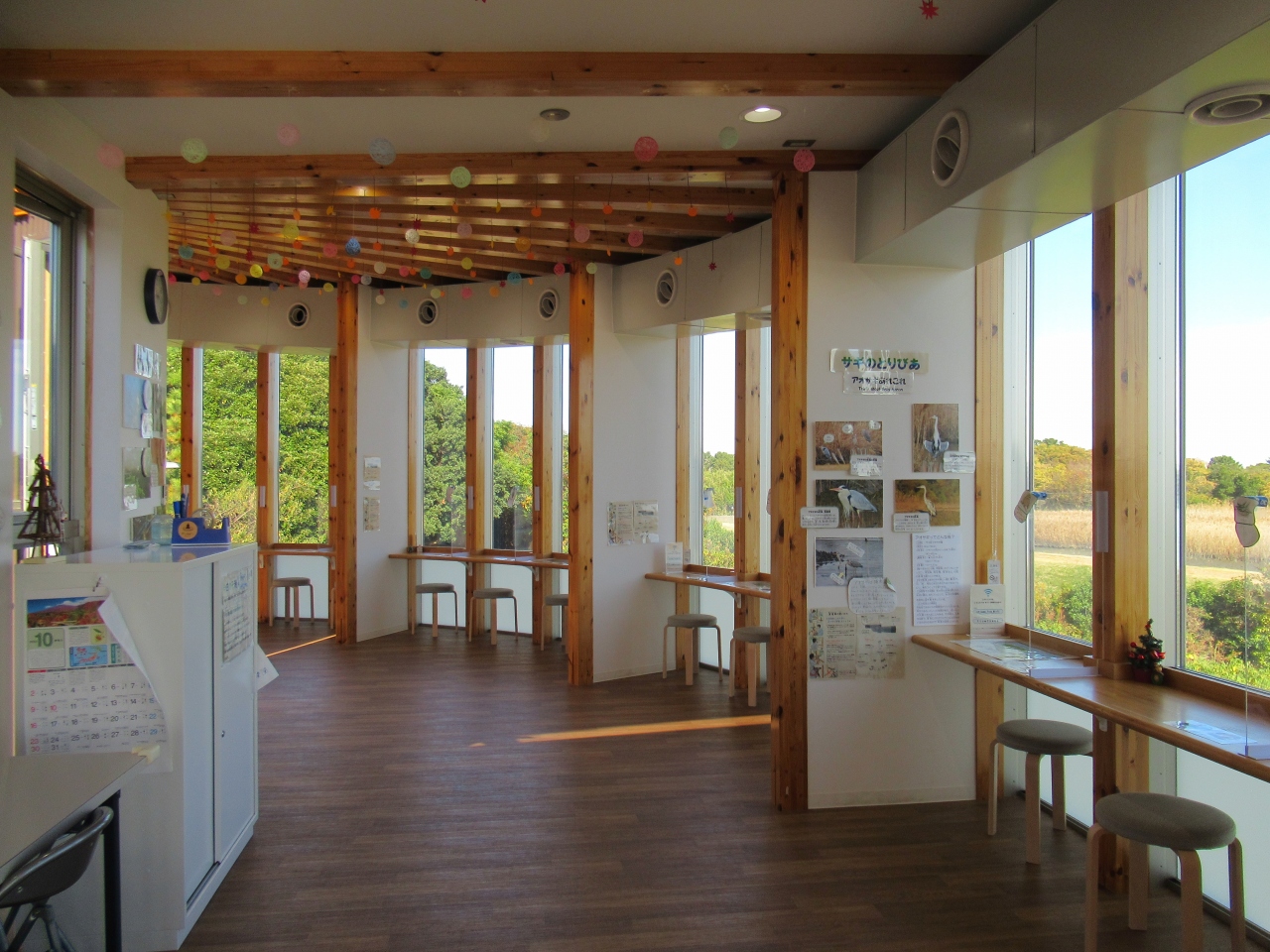 車で訪れました。宮内庁新浜鴨場端の森にいる野鳥の鳴き声を聞きながら、桜が植えられている歩道を通り行徳野鳥観察舎に行きました。あいねすと呼ばれる2階建ての建物で、受付で記名をして入館します。貸出望遠鏡の使い方を教わり、2階の観察スペースに望遠鏡を置いて野鳥を観察しました。止まり木にいるカワウや水辺を歩くダイサギを見ました。ダイサギが魚を捕らえて飲み込む瞬間を見ることができました。2階に野鳥の写真や鳥の見分け方などが分かりやすく展示してあり、野鳥に詳しくなくても興味を持ちました。観察スペースは広々としていて居心地よく、トイレはきれいでした。駐車場への帰り道、水辺にカモ、コサギ、先ほどのダイサギがいて魚を探していました。入館証を作ったのでまた訪れたいです。