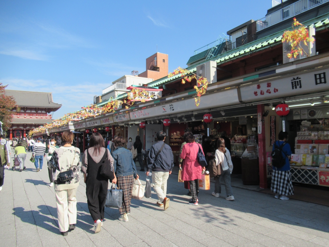 浅草中央通り沿いにある手拭い店です。手な染という、一色ごとに一つの抜き型が必要な染色技法で染めているため、手間がかかる反面、繊細な表現や多彩な色づかいの手拭いに仕上がっています。店内にはクリスマスの絵柄や十二支が染められた手拭いがたくさん並んでいました。食器洗いとしてでなく、インテリアやホコリよけ、首に巻いたり頭に被ったり身に着けることもできるため、海外に住む友人へのクリスマスプレゼントに5枚購入しました。デザインの素晴らしいものが多く、どれにしようか迷ってしまいました。