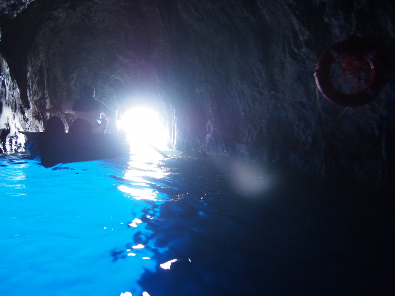 港で小船に乗り換えるので人数が限られるので混雑は避けられます。洞窟の入り口で更にボートに乗り換えです。お客さんは3人づつ乗り、船頭さんがオールで漕いで洞窟の中へ入っていきます。この時頭をさげていないと洞窟の岩に頭をぶつけます。中に入ると今入ってきた入り口からの光が水面に素晴らしい色を創り出してくれます。なかなか文字では表現でにないです。百聞は一見に如かずです。是非ごらんください。後悔はしないと思います。