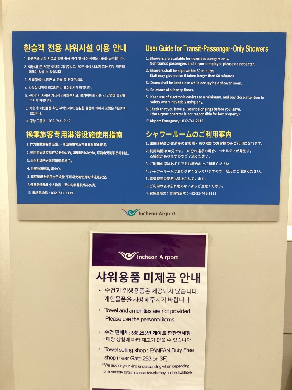 反対側のウイング、ゲート268付近の4階にも同様のシャワールームがあります。仮眠室も近くにあります。- 旅行時期