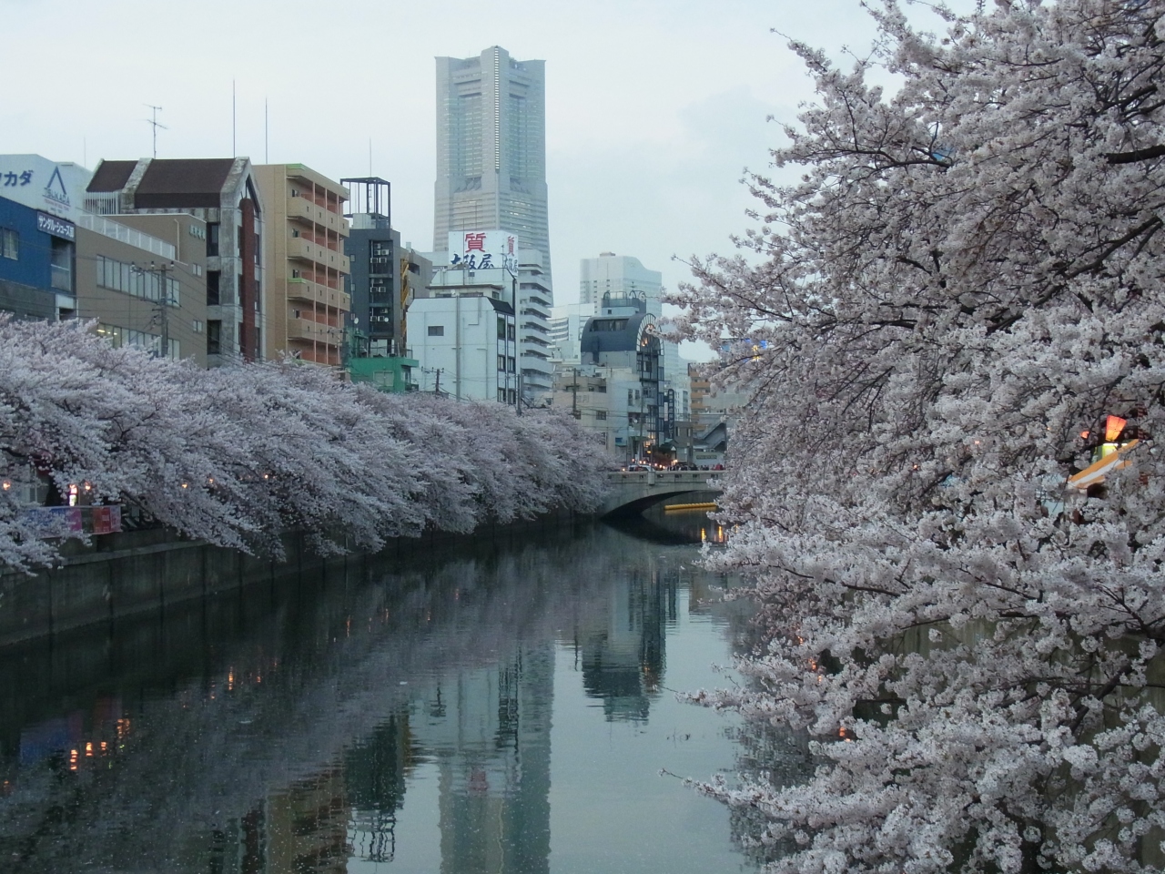 京急日ノ出町~弘明寺駅の大岡川沿いの両岸には桜が植えられていて、花見シーズンになると、日ノ出町、黄金町駅付近ではランドマークタワーを背景にした桜が見れる。弘明寺駅付近は商店街がありイベントも行われ活気がある。出店もたくさん出ているので、桜の花の下を日の出町~弘明寺(全部で5駅、4km程度)を歩いても楽しい。