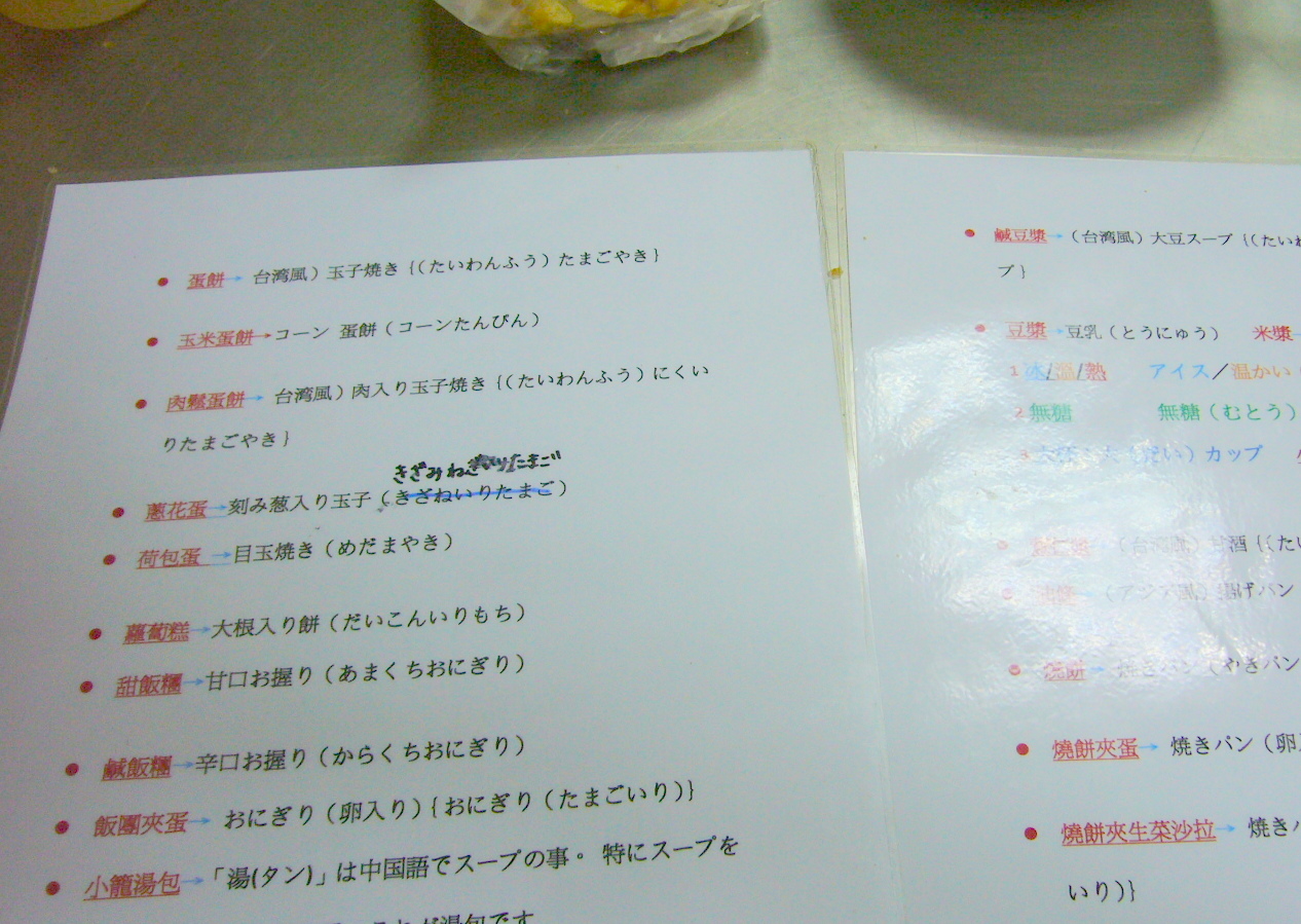 定番メニューの鹹豆漿・蛋餅・焼餅などをいただいた。