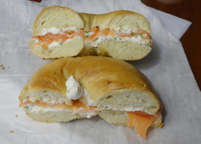 外の歩道で立ち食いするかそれとも持ち帰って食べるか、