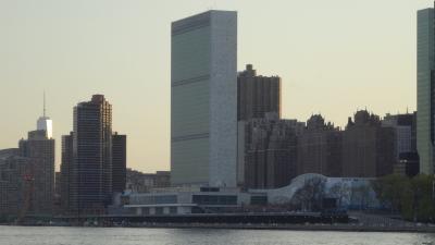 イースト川を挟んだマンハッタン側には川べりに国連ビル、