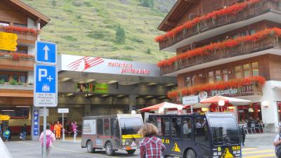 一つ手前のテッシュ(Täsch)駅の駐車場から鉄道に乗り換える。