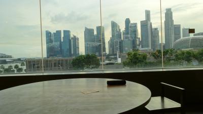 窓側客席からはマリーナ湾とベイサンズの絶景を望むことができる。