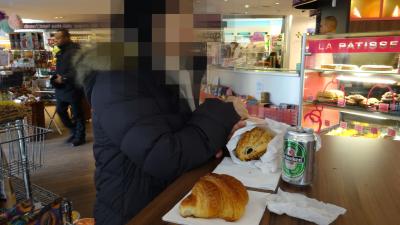 店内イートインコーナーでパンとビールを立ち食いした。