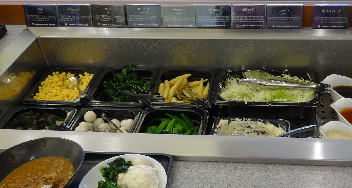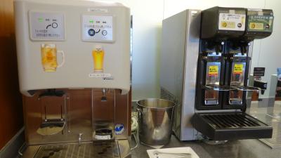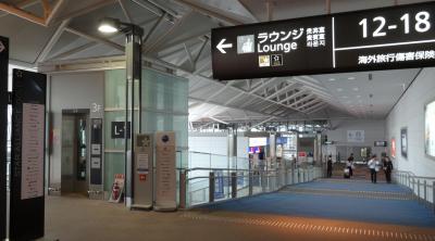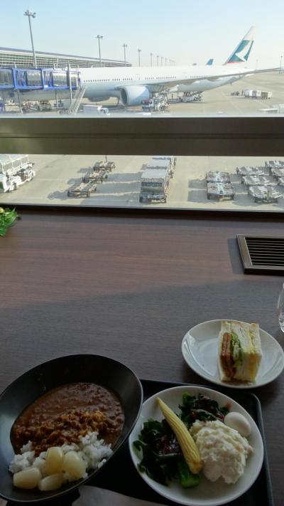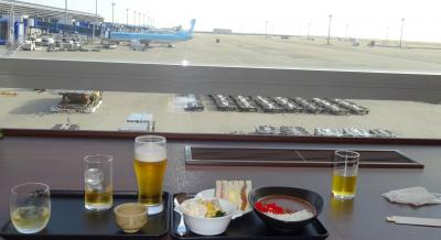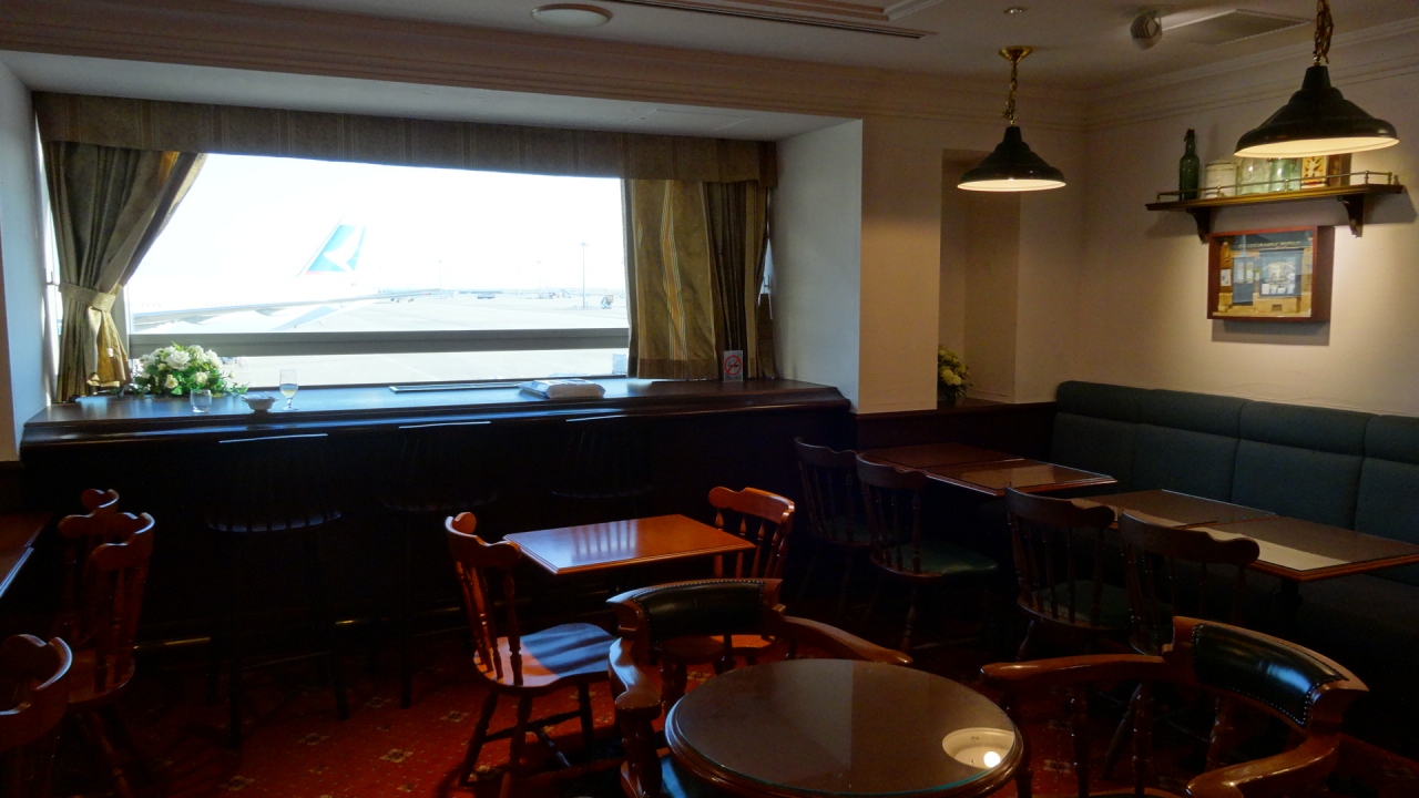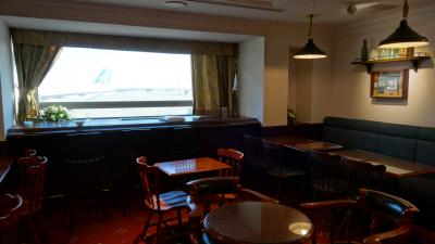 窓際のカウンター席から搭乗予定の航空機を眺めながら