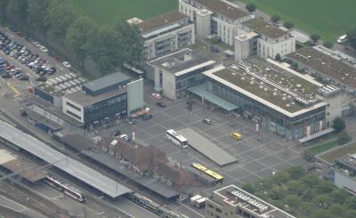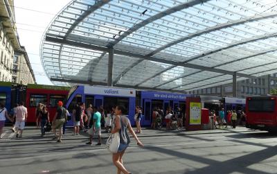 駅舎から少し南方にはトラムやバスの乗り場があり、