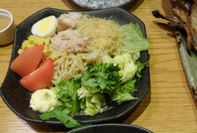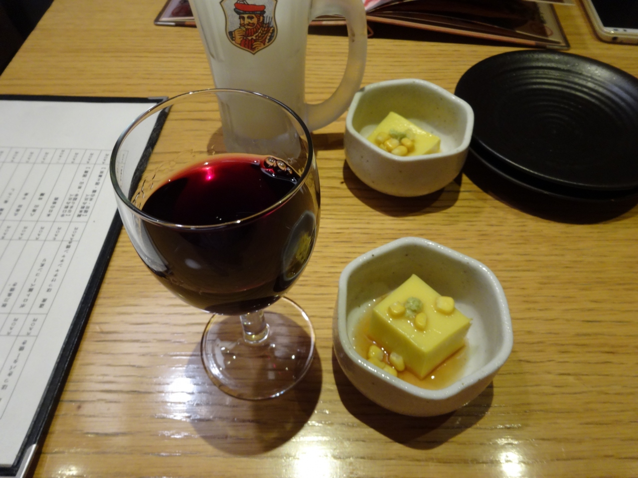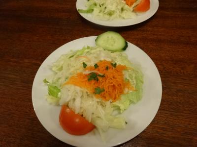 空き座席がほどよくあり、ワイン・サラダなど
