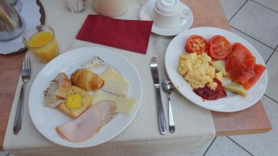 朝食ビュッフェは一部温かいものもありとてもおいしい。