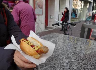 フランクフルトの旧市街を眺めながら頂くソーセージは
