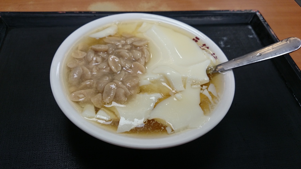 観光客にも地元の人にも人気の甘味所。豆の味がしっかりするのに甘さ控え目で優しい味。営業時間も長いので夜食に毎日通いました!店内で食べる場合もテイクアウトでも入口の列に並び、順番がきたら注文。品物と引き換えにお金を払います。店内で食べる場合は、自分でトレイを持って席へ。一階は混んでいますが、二階に18テーブルあるので大丈夫。注文は、紙に漢字で書いて店員さんに見せたらスムーズでした。外の道路側に日本語メニューも貼ってありましたが、写真付で人気メニューだけ載っています。店で食べるには内用、テイクアウトは外用、落花生は花生、小豆は紅豆で通じました。