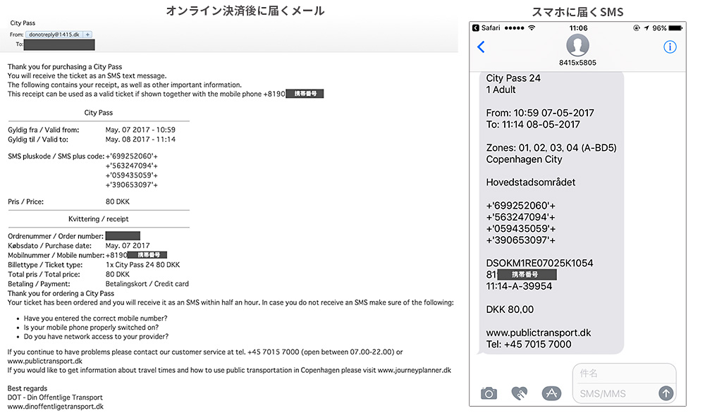 カード決済後に、メールが届き、その後にSMSのテキストメッセージがスマートフォンに届きます。